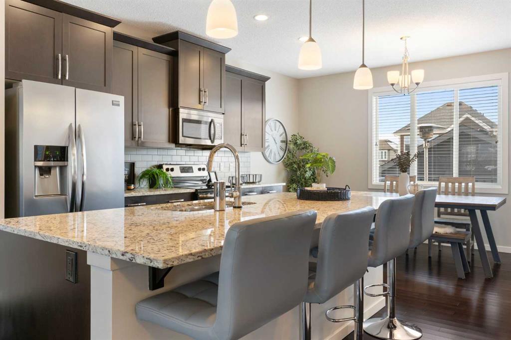 OPEN HOUSES: SAT MAR 14, 12-2PM & SUN MAR 15, 12-2PM. Welcome to this beautifully maintained, air-conditioned home offering 4 bedrooms, 3.5 bathrooms, a fully finished basement, and a double detached garage in the highly sought-after community of Evanston. From the charming front veranda to the sunny southwest-facing backyard perfect for summer BBQs, this home offers a wonderful balance of comfort and functionality. The bright, open main floor features gleaming hardwood flooring, a spacious living room, and a thoughtfully designed layout ideal for everyday living. The kitchen is a standout with a large central island, granite countertops, stainless steel appliances, and ample cabinetry, flowing seamlessly into the generous dining area. A convenient den or study nook provides the perfect spot for working from home or homework time. Upstairs, the spacious primary bedroom includes a walk-in closet and a beautifully updated ensuite with a newly installed shower and dual sinks. Two additional bedrooms, a full bathroom, and upper-level laundry complete the second floor. The fully finished basement expands your living space with a large recreation room, 4th bedroom, 3-piece bathroom, and plenty of storage. Perfect for movie nights, relaxing, or entertaining. The double detached garage is insulated and finished, offering a functional workspace and extra durability. Significant exterior upgrades provide peace of mind, including a new roof on both the house and garage (2025), new garage door, new siding on the back, north, and west sides of the home, new siding on the north and west sides of the garage, new eavestroughs. Located close to parks, playgrounds, and walking paths, this home is also near the scenic Evanston West Lookout Point. Families will appreciate nearby schools such as Our Lady of Grace School and Kenneth D. Taylor School, along with a brand-new middle school opening soon. Shopping and everyday amenities are minutes away, including Walmart, Co-op, FreshCo, and Costco, plus numerous restaurants and fitness facilities. Commuting is easy with quick access to Stoney Trail, Symons Valley Road, and Beddington Trail, and Calgary International Airport is only about 17 minutes away. With thoughtful upgrades, flexible living space, and an excellent location in a welcoming community, this Evanston home is move-in ready and ideal for modern family living.