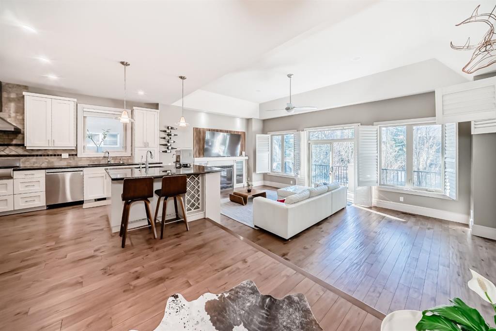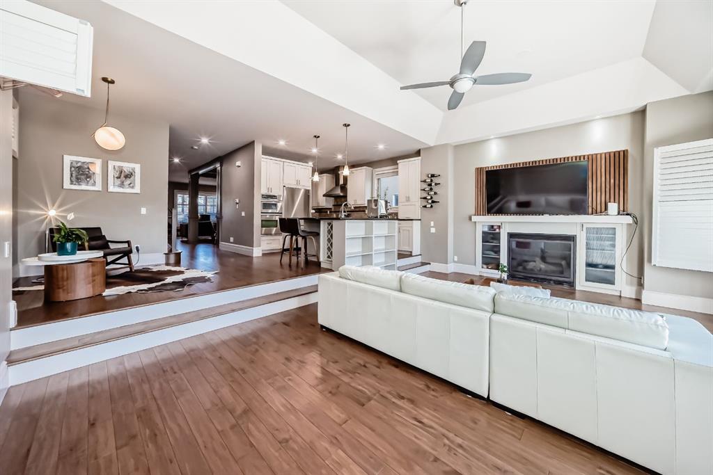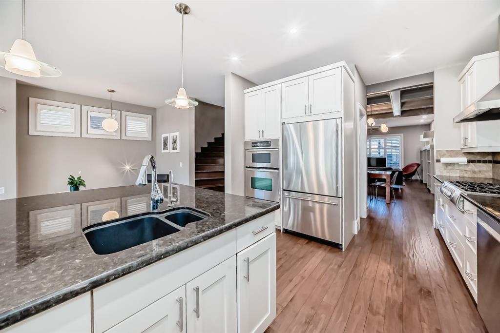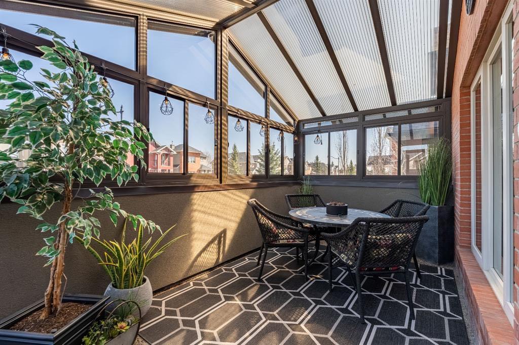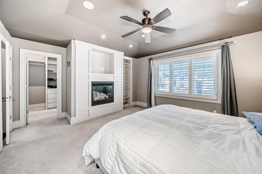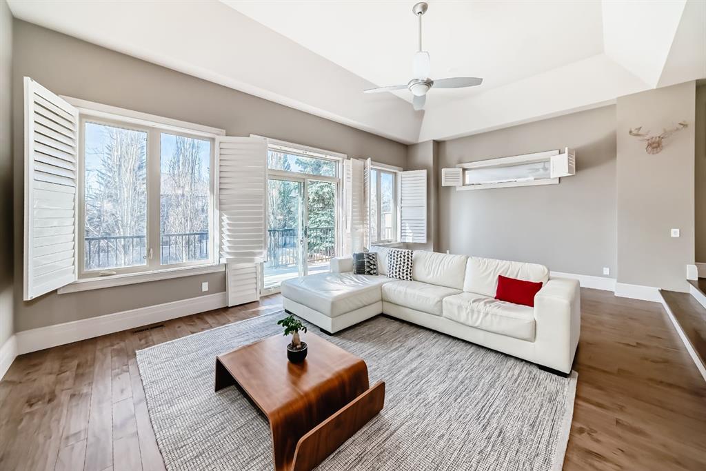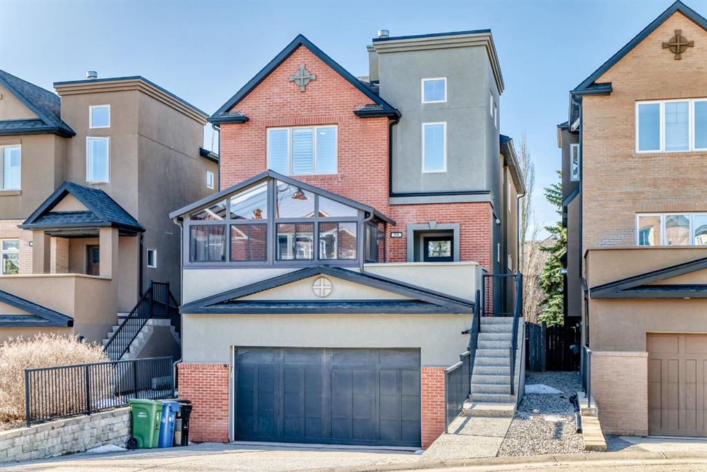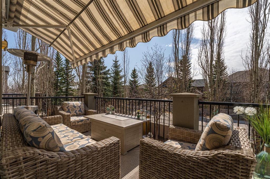 Located in the highly sought-after community of Aspen Woods, this stunning custom-built Brownstone blends classic architecture with a refined urban transitional design, all within a quiet suburban setting. Showcasing exceptional pride of ownership, this luxurious home is thoughtfully upgraded throughout, featuring central A/C, hardwood flooring, granite countertops, instant hot water, in-floor heating, water softener and filtration systems, built-in speakers, California shutters, a dog wash station, a heated garage, and much more. Designed with both comfort and entertaining in mind, the chef-inspired kitchen is the heart of the home. It boasts an oversized island, gleaming granite countertops, dual sinks, stainless steel appliances, a 5-burner gas cooktop, built-in wall oven and microwave, a spacious pantry, and convenient access to the formal dining room. The bright and spacious family room features 12-foot ceilings, abundant natural light from its sunny south exposure, and opens onto a full-width deck overlooking the beautifully treed backyard. Upstairs, retreat to the luxurious primary suite, complete with a fireplace, an expansive designer walk-in closet, and a spa-inspired 5-piece ensuite featuring dual vanities, a soaker tub, and a glass shower with dual shower heads. This level also includes two additional generously sized bedrooms, a full bathroom, a home office/study, and a convenient laundry room.mThe fully developed walk-out basement extends your living space with a fourth bedroom, a 2-piece bath, a large recreation room, and a wet bar equipped with a dishwasher and wine fridge—perfect for entertaining. Sliding patio doors lead to a covered patio and private, landscaped backyard oasis with mature trees and a south-facing exposure. A screened-in hot tub (negotiable) enhances the outdoor experience. This home is designed to maximize indoor-outdoor living, with all three levels above grade, a walk-out basement, a retractable awning on the deck, and a covered patio. Additional features include vaulted, coffered, and tray ceilings, light maple flooring, architectural columns, built-in shelving, a curved staircase with iron spindles, three fireplaces, and a built-in sound system. Practical features for everyday comfort include a built-in vacuum system, humidifier, ceiling fans, and energy-efficient custom shutters throughout. The oversized double attached garage is heated, and a well-designed mudroom offers built-in benches, cubbies, and a pet washing station. Situated on a private cul-de-sac, this home also features a charming enclosed front sunroom, allowing for year-round enjoyment of outdoor living. Aspen Woods is home to some of Calgary’s most prestigious schools, including Webber Academy, Ambrose University, Rundle College, Ernest Manning High School, Calgary Academy, and Dr. Roberta Bondar School. With close proximity to Bow Trail, commuting downtown is quick and convenient, short walk to LRT.