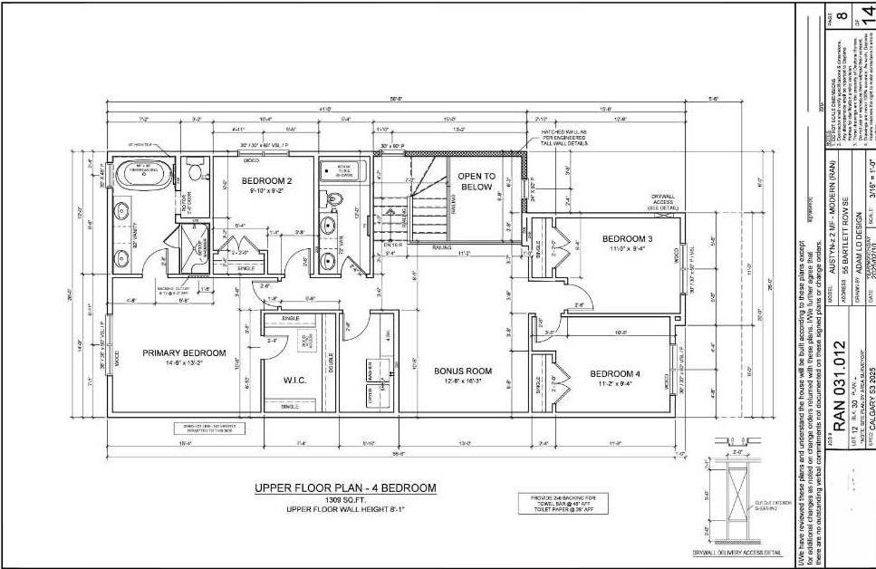 Welcome to 55 Bartlett Row SE, an exceptional two-storey residence located in the new and sought-after Southeast Calgary community of Rangeview. This impressive family home is designed for elevated living and abundant space, offering a functional main level that includes a gourmet Kitchen, an intimate Nook, and a spacious Great Room for entertaining, complemented by a versatile Den perfect for a home office or study. Practical features include a convenient Mud Room, a welcoming Foyer, a 2-piece half bathroom, and a functional double car attached garage. The expansive upper level is built for comfort and privacy, featuring four well-sized bedrooms, including a luxurious Primary Bedroom retreat complete with a lavish 5-piece ensuite bathroom and an extensive walk-in closet. The three additional bedrooms share a secondary 5-piece bathroom, while a dedicated Laundry Room adds convenience, and a large Bonus Room provides essential flexible living space for the family. Completing this fantastic property is the Unfinished Basement, offering a blank canvas ready for your custom development vision. This home perfectly balances luxurious finishes, functional design, and ample room for a growing family in a desirable Calgary community.