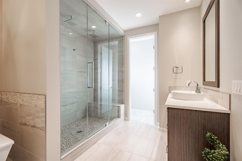 Upstairs, the impressive Bonus Room offers plenty of room for oversized furniture, making it perfect for relaxation or family gatherings. The convenient Upper-Level Laundry room adds everyday ease. The Primary Suite is generously sized to accommodate a king bed and features a Custom Walk-in Closet. The Luxurious Ensuite provides a Spa-like Experience with dual vanities, a soaker tub, an oversized tiled shower with dual rain showerheads, and a private water closet.
