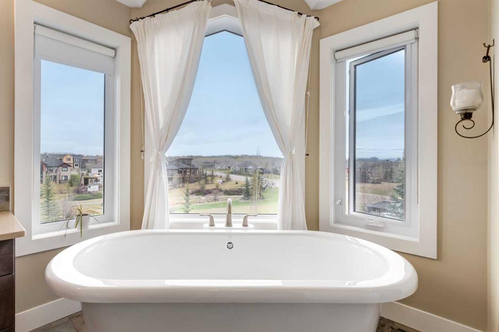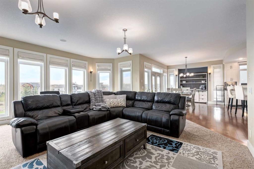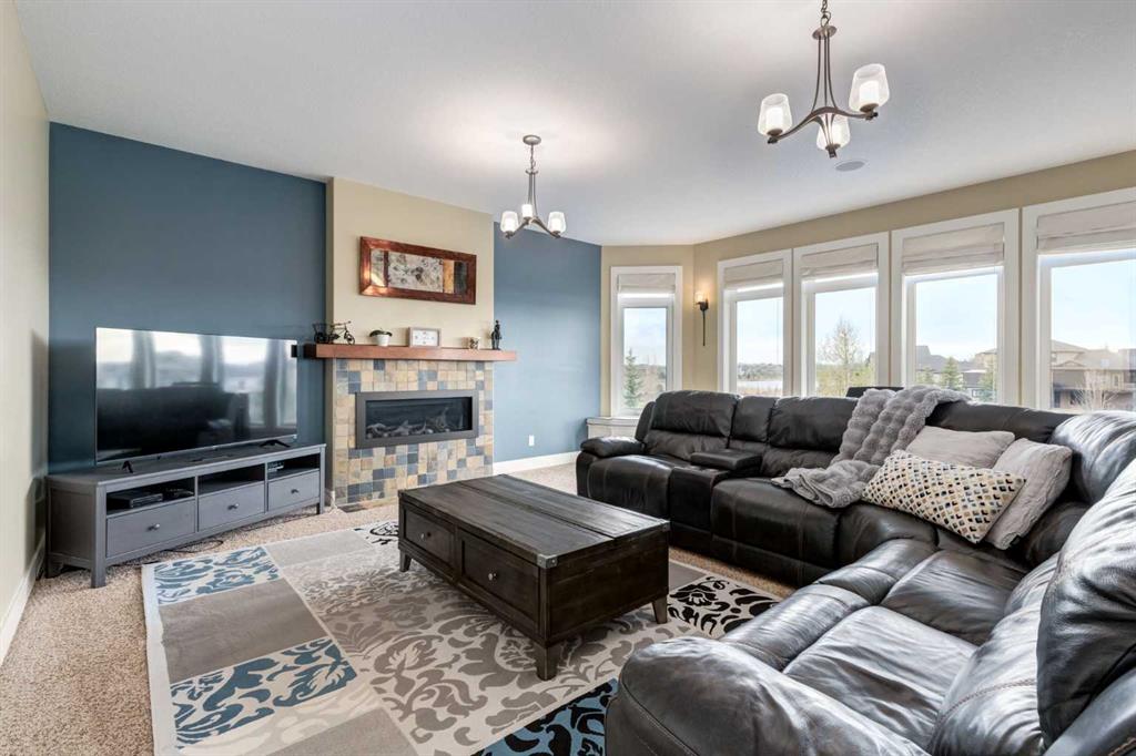 Welcome to lakeside luxury in Monterra, where mountain views, peaceful green space, and modern design come together on a stunning 1/3 acre south-facing lot. This estate home offers over 4,100 sq. ft. of thoughtfully designed living space that captures breathtaking views from nearly every room. From the moment you walk in, you’ll notice how light and scenery flood the open-concept main floor. The heart of the home is the chef’s kitchen—complete with a striking curved quartz island, Bosch and Jennair appliances, and endless white cabinetry (with a built-in toe-kick vacuum for easy cleanup). The walk-through pantry connects seamlessly to a family-sized mudroom with custom lockers, making everyday living effortlessly organized. Just off the kitchen, the great room showcases panoramic lake and mountain views with a cozy fireplace for those crisp Alberta evenings. Need to work from home? A private main floor office offers quiet focus away from the buzz of daily life. Upstairs, the showstopper is the vaulted primary retreat—complete with heated floors in the spa-like ensuite and tinted windows for both comfort and privacy. Step out onto your private balcony, coffee in hand, to soak up unobstructed mountain and lake views before the rest of the house wakes. Two additional upper bedrooms and a well-placed full bathroom sit just down the hall, along with a spacious laundry room for added convenience. Downstairs, the fully finished walkout basement provides ultimate flexibility. Whether it’s multigenerational living, if you want to add a separate private living quarters, room for guests, or another family hangout spot—the layout is ready, featuring two more bedrooms, a wet bar/kitchenette, second laundry, and a separate entry. Add a door and a cooktop, and you’re nearly there. (A secondary suite would be subject to approval and permitting by the municipality.) The home runs efficiently with in-floor heating, two furnaces, water softener, and solar-ready wiring. The triple garage- It’s finished with epoxy flake floors, baseboard heat, and room for all your gear. Step outside to your beautifully landscaped yard with irrigation, a custom stone and wrought iron fireplace/Pizza Oven, roman paved patio, and wiring for a hot tub—your outdoor entertaining dreams await. Monterra at Cochrane Lakes is where luxury meets nature—a semi-rural setting just minutes from the city and the mountains. Book your showing today and discover why this is more than a home… it’s a lifestyle.