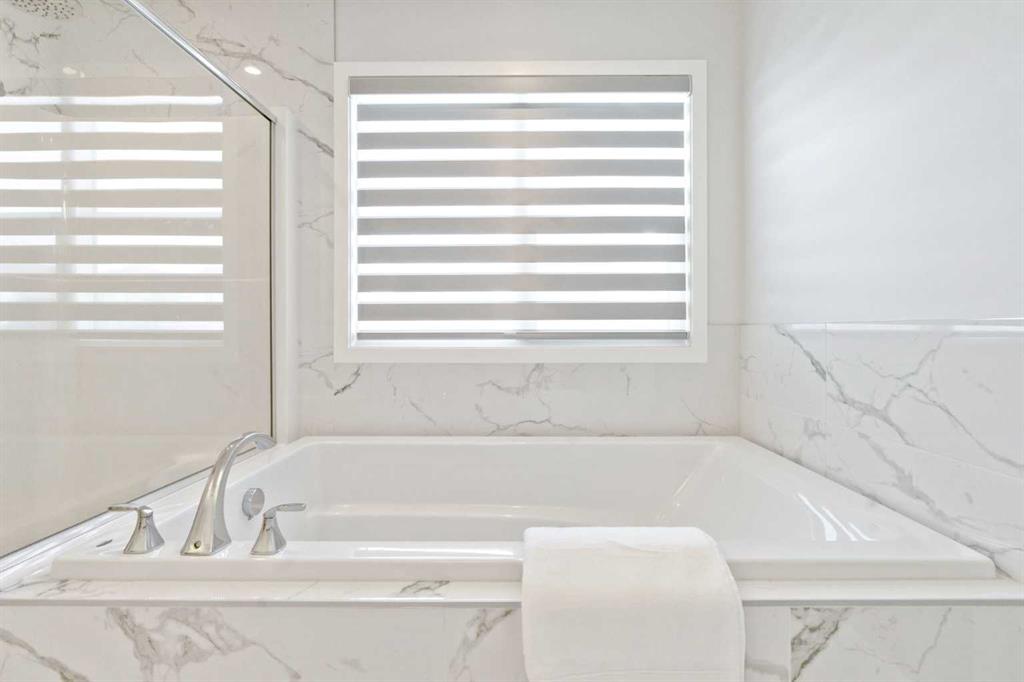• Soaker tub with tile surround and dedicated shower area