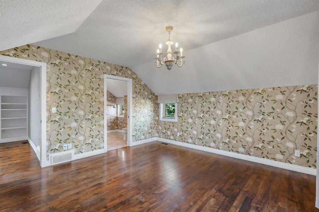 Upstairs, two generous bedrooms sit on opposite sides of a large open den, providing a versatile space for a home office, family lounge, or creative studio. Beautiful hardwood floors flow throughout, and each light fixture has been thoughtfully selected to reflect old world European charm.