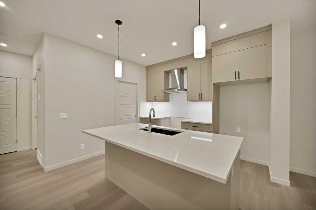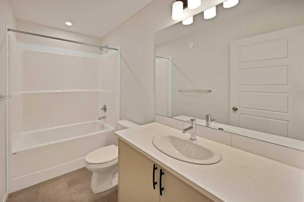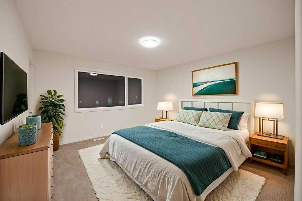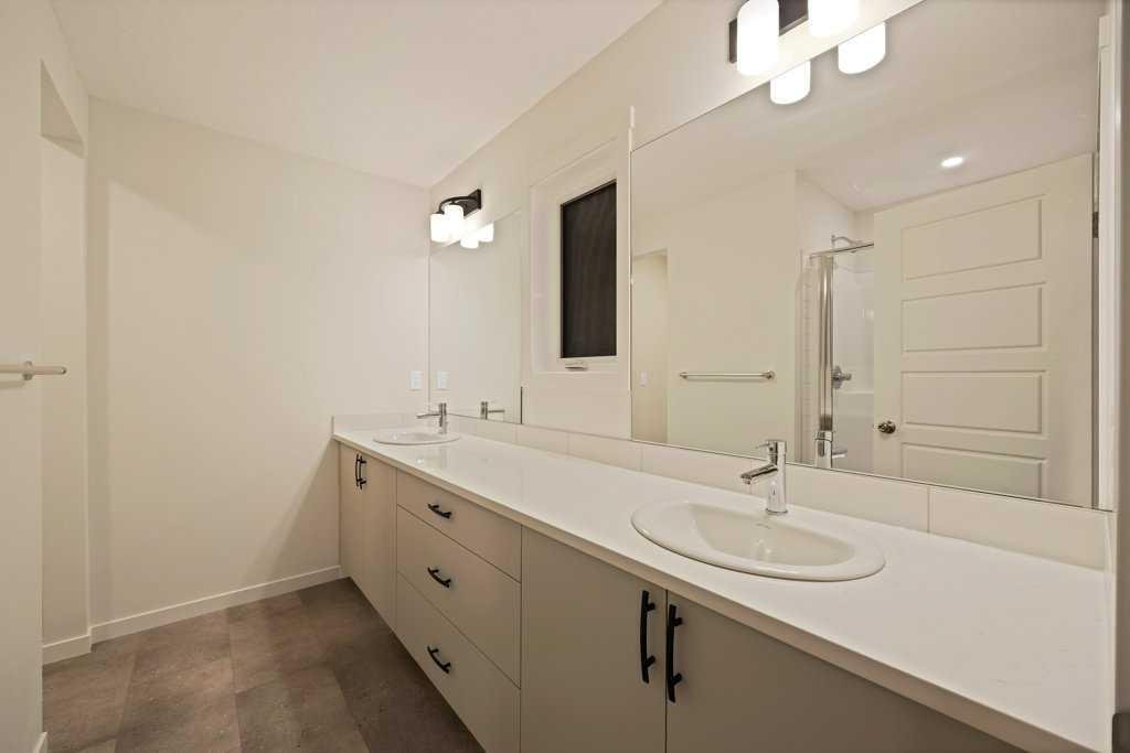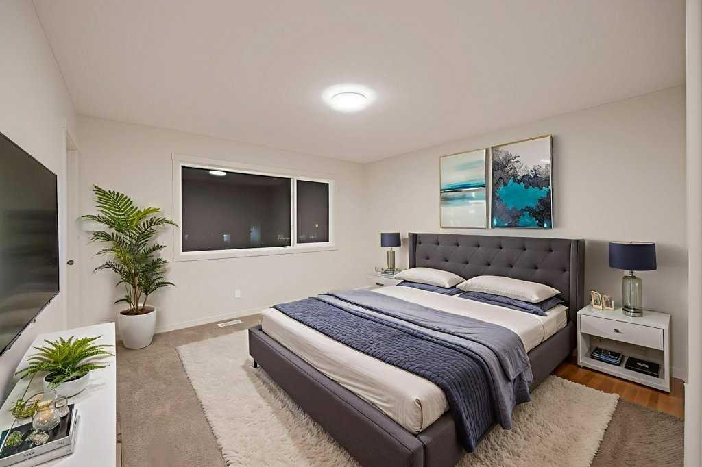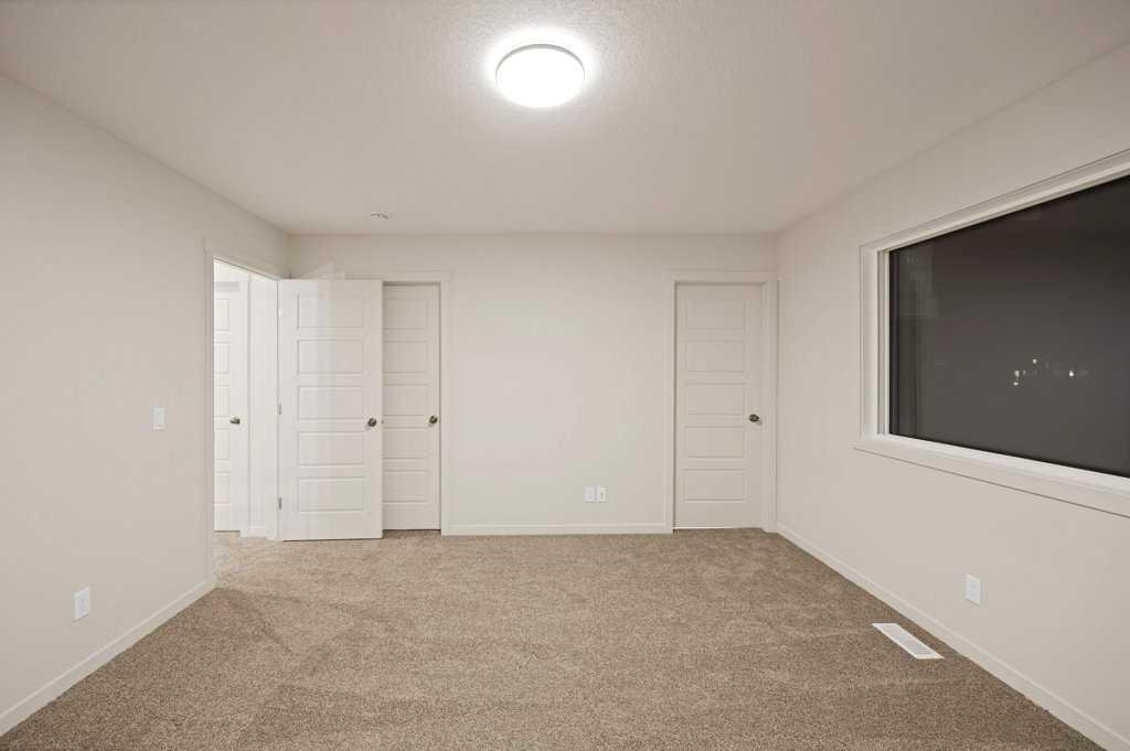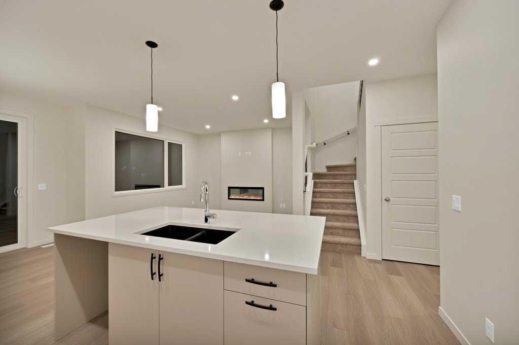 Welcome home to this stunning walkout duplex that perfectly blends modern elegance with functional design. This brand-new construction offers 1,565 square feet of meticulously crafted living space with an attached double front garage, set on a generous 3,579 square foot walkout lot that backs onto a beautiful greenspace with a pond. The main floor welcomes you with a spacious living area featuring an elegant electric fireplace, while a walkthrough pantry connects the mudroom to the gourmet kitchen. Here, stainless steel appliances, including a gas stove and chimney hood fan, shine under recessed lighting. The open-concept layout seamlessly integrates the kitchen, great room, and dining area, where large windows fill the space with natural light and create an inviting atmosphere for both everyday living and entertaining. Upstairs, the primary bedroom serves as a private retreat, complete with a luxurious four-piece ensuite and a sprawling walk-in closet that provides ample storage for your wardrobe essentials. Enjoy serene views of the pond and green space, with no adjoining backyard to interrupt the scenery. Two additional spacious bedrooms offer large windows framing picturesque views of the surrounding landscape. A conveniently located laundry room, equipped with a front-load washer and dryer, adds both comfort and practicality to your daily routine.