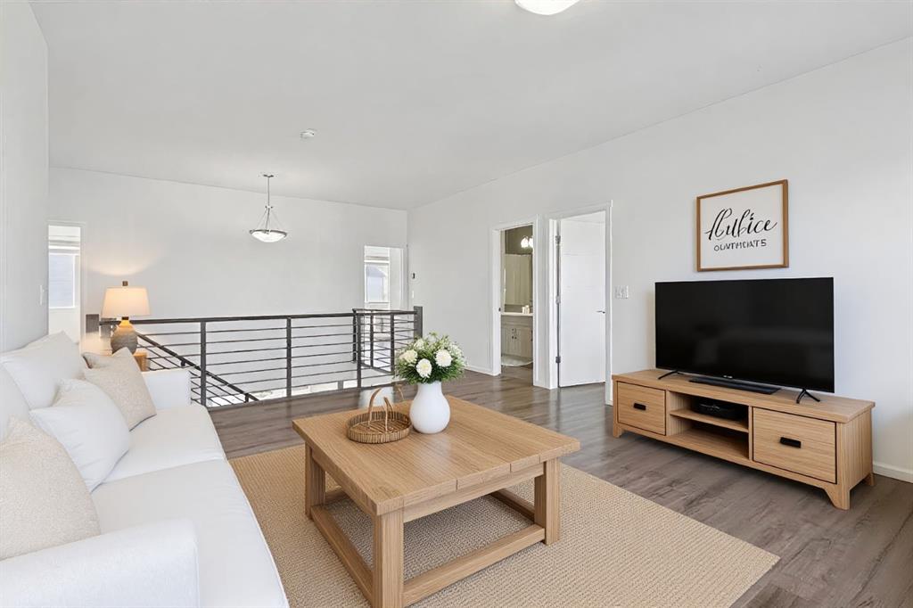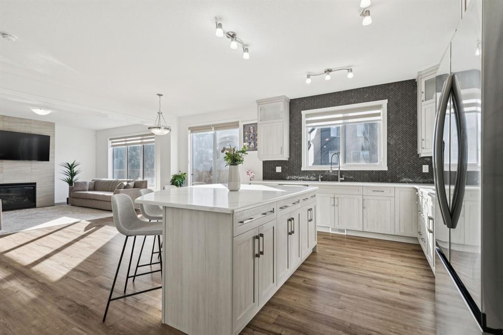 Welcome to #557 Southwinds Close SW, Airdrie, a stunning original-owner, highly upgraded family home perfectly positioned on a massive SW-facing pie lot on a quiet, low-traffic street. Offering over 2,800 sq ft above grade, 4 bedrooms, and 3.5 bathrooms, this home showcases thoughtful design, elevated finishes, and near-new condition throughout. From the moment you arrive, the charming front veranda and excellent curb appeal set the tone. Inside, you’re greeted by 9’ ceilings, 8’ interior doors, tasteful modern colours, and an open-concept layout flooded with natural light. Durable and stylish upgraded luxury vinyl plank flooring runs throughout the main and upper levels, creating a cohesive, family-friendly space. The heart of the home is the bright, chef-inspired kitchen, featuring upgraded stainless appliances, a gas cooktop, built-in oven, under-cabinet lighting, and an abundance of cabinetry and prep space. The full butler’s kitchen elevates both entertaining and daily life, complete with a second gas stove and additional storage. Overlooking the spacious dining and living areas, the living room is anchored by a gorgeous gas fireplace and enhanced by oversized windows that frame the backyard beautifully. A main-level office provides a quiet workspace, while the custom boot room with built-in bench keeps busy family life organized. The highly upgraded staircase adds architectural interest and leads you upstairs to a thoughtfully designed upper level. Upstairs, you’ll find four generously sized bedrooms, all with walk-in closets, centered around a huge bonus room—perfect for movie nights, a play area, or teen retreat. Two of the bedrooms feature private, spa-like en suite bathrooms, offering comfort and flexibility for families or guests. The upper-level laundry room adds everyday convenience. Outside, enjoy the fully fenced, oversized pie lot with southwest exposure, ideal for afternoon sun, kids at play, and future outdoor living plans. Additional highlights include custom blinds throughout, hot water to the garage, a double attached garage, and a true turn-key condition rarely found. Located in a family-friendly area, this home is close to all levels of schools, parks, and everyday amenities, with easy highway access for commuters. Future development plans include new schools and another expanded Genesis Place recreation facility, making this an even more attractive long-term investment. Thoughtfully upgraded and meticulously maintained, this home offers a perfect blend of style, function, and value. Whether you’re a growing family or a buyer seeking a move-in-ready home with modern finishes, this property delivers on every level.