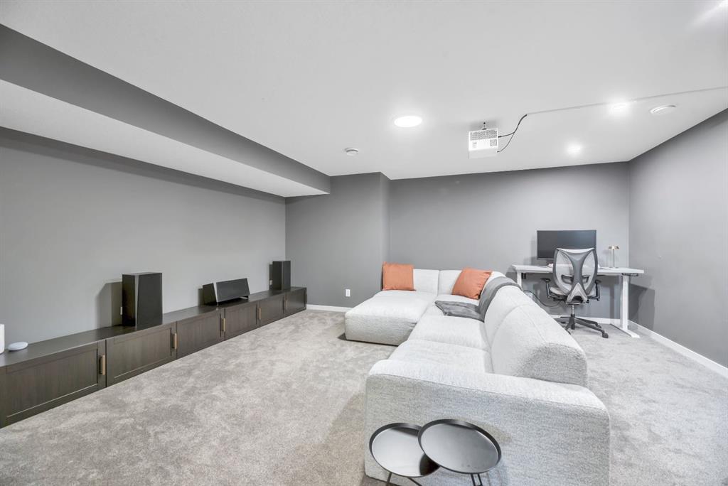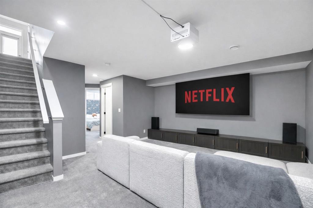 The fully developed, purpose-built basement is a private entertainment retreat, professionally wired for 11 in-wall speakers, creating an immersive home theatre experience. This level also includes a fourth bedroom with 9-foot ceilings and natural light, along with a full third bathroom, ideal for guests or multigenerational living.