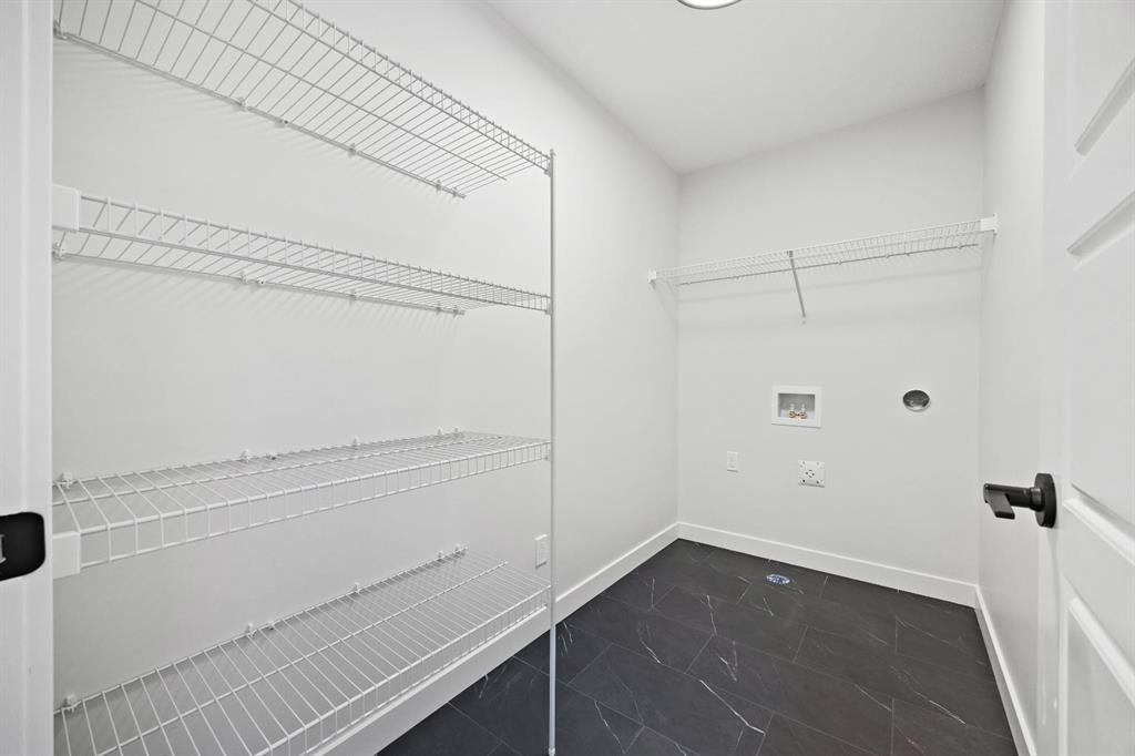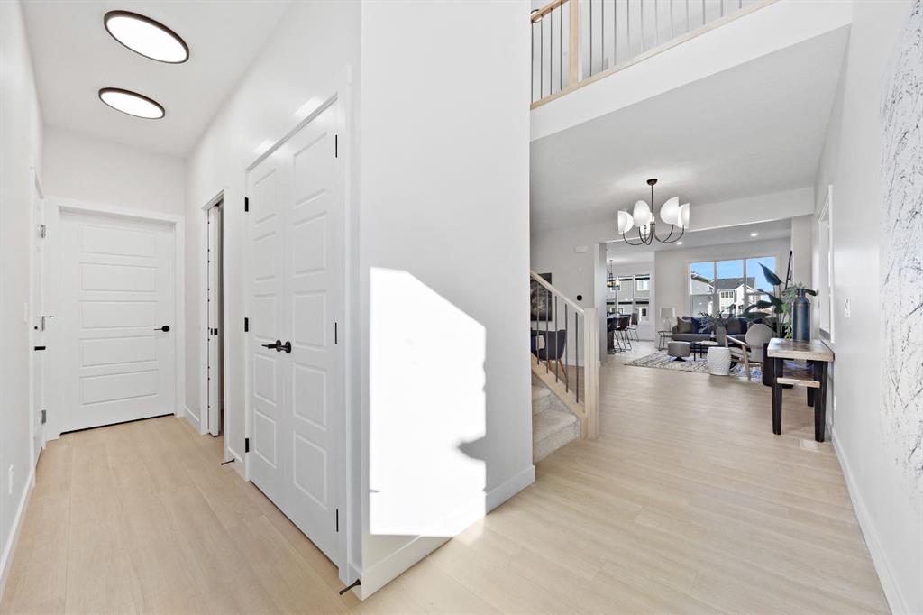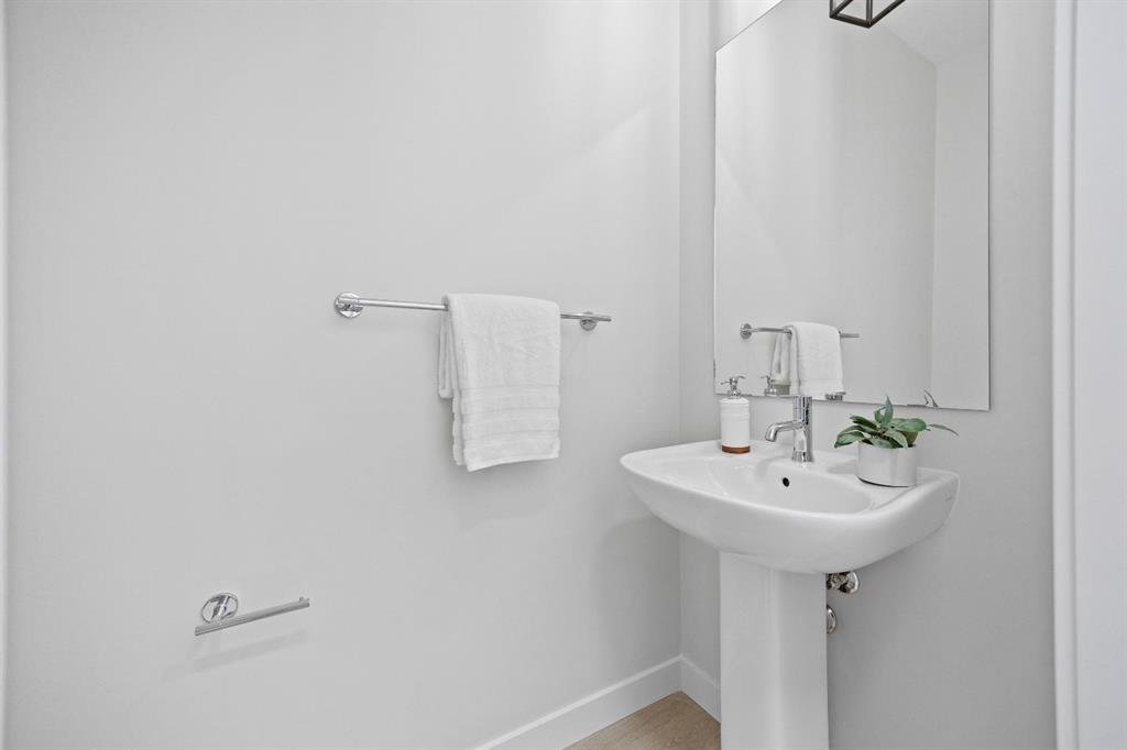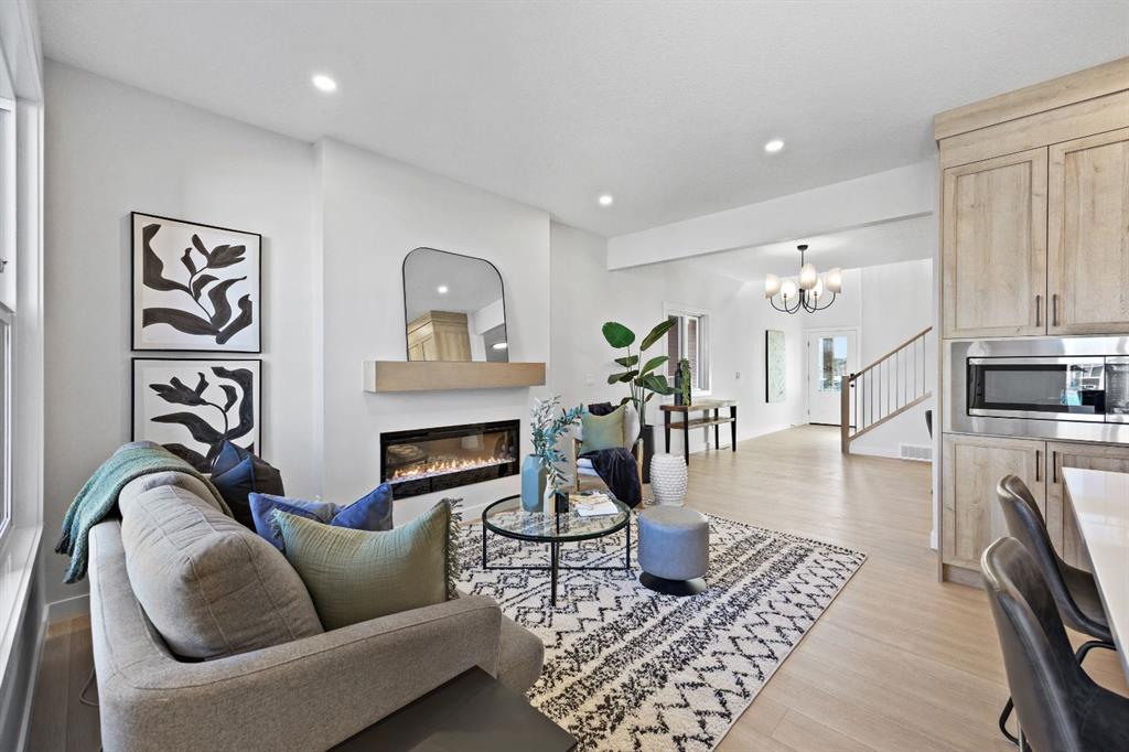 Welcome to the Montay in Cochrane’s Fireside community. This home offers 2,021 sq. ft., 4 bedrooms, and 2.5 bathrooms. Modern design and thoughtful upgrades make daily living easy. The main floor features a bright, open kitchen with quartz countertops, shaker-style cabinetry, and stainless-steel appliances. The island adds seating and workspace. The walk-through pantry and mudroom provide smart storage. Connected dining, living, and great rooms create an ideal space for gatherings. Upstairs, the primary suite has a walk-in closet and a private ensuite. Three more bedrooms, a full bathroom, a versatile loft, and an upper laundry complete the floor. Built with flexibility in mind, this home includes a side entry and unfinished basement with 9-foot ceilings, ready for your ideas. A double garage and rear lane access add convenience. Fireside is one of Cochrane’s most connected communities, known for its schools, local shops, and pathways winding through parks and nature. It’s designed for families and outdoor lifestyles, with quick access to Calgary and the mountains. Area size was calculated with the RMS using the builder’s blueprints. Photos are representative. The kitchen in this home has white cabinetry.