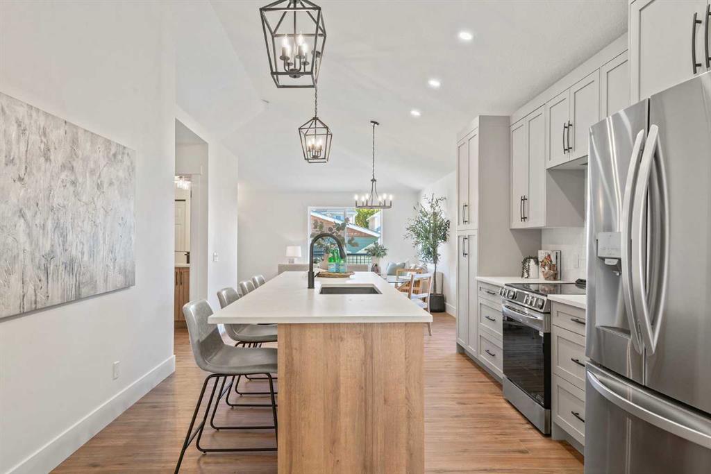 WELCOME HOME! This beautiful fully renovated bi-level home has been completely transformed from top to bottom, offering a perfect blend of modern design, comfort, and functionality. With 4 spacious bedrooms and 3 beautifully finished bathrooms, this home is ideal for families and those who love quality craftsmanship. Perfectly situated on a quiet, tree-lined street just steps from a park, it delivers both peace and convenience. The main level features a bright open-concept layout with vaulted ceilings, wide-plank flooring, and an impressive designer kitchen complete with a massive quartz island, custom cabinetry, brand new premium stainless steel appliances, and sleek black finishes. Large windows fill the space with natural light, creating a warm and inviting atmosphere. Every detail has been thoughtfully upgraded, including new plumbing, new windows, and high-end finishes throughout. The lower level adds incredible versatility with a spacious recreation area, two additional bedrooms, a full bathroom, and a convenient kitchenette—perfect for guests, extended family, or potential rental use. Don’t forget the central AC! Step outside to enjoy the composite deck overlooking a private, landscaped yard and a brand-new oversized double garage offering plenty of parking and storage. Truly move-in ready, this home is a rare turnkey opportunity in a sought-after, family-friendly community close to schools, shopping, parks, and pathways. A must-see property that combines modern luxury with everyday practicality. Book your showing today!