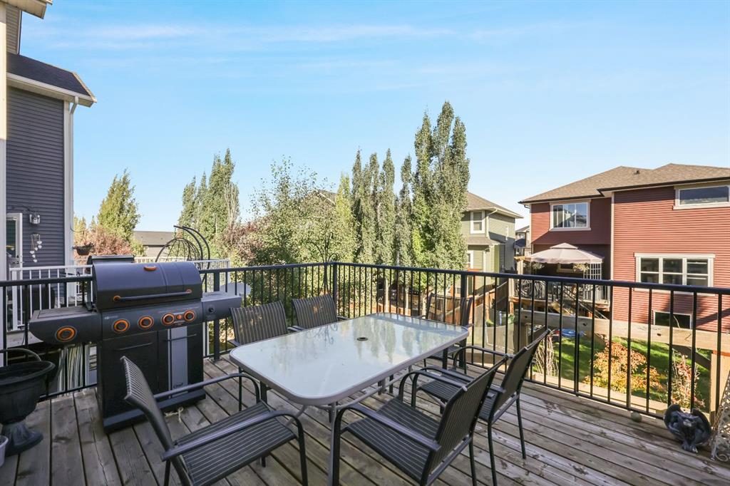 This executive two story walkout home has 3 bedrooms, laundry, and a family room on the upper level with large windows to let in lots of natural light. The main floor features an open concept layout with a kitchen hosting granite countertops, a walk though pantry a spacious living room and a formal dining room, all enhanced by a double sided gas fireplace framed in esquisite stonework. A deck adjacent to the kitchen suitable for an outdoor Catio, includes a gas BBQ hook up. The kitchen is equipped with a gas stove refrigerator featuring a water/ice dispenser with an illuminated front door, and a newly installed dishwasher. The basement contains a private illegal suite with its own laundry facilities, private entrance and privacy door from upstairs. The residence is warmed with forced air heating and cools you with AC! It also offers an attached heated double car garage with spacious back entry coat area and a significant storage room in the basement. The lower patio brings some privacy space, and a cozy sitting area Nearby walking path lead to Jumping Pound Creek, and paths to downtown.