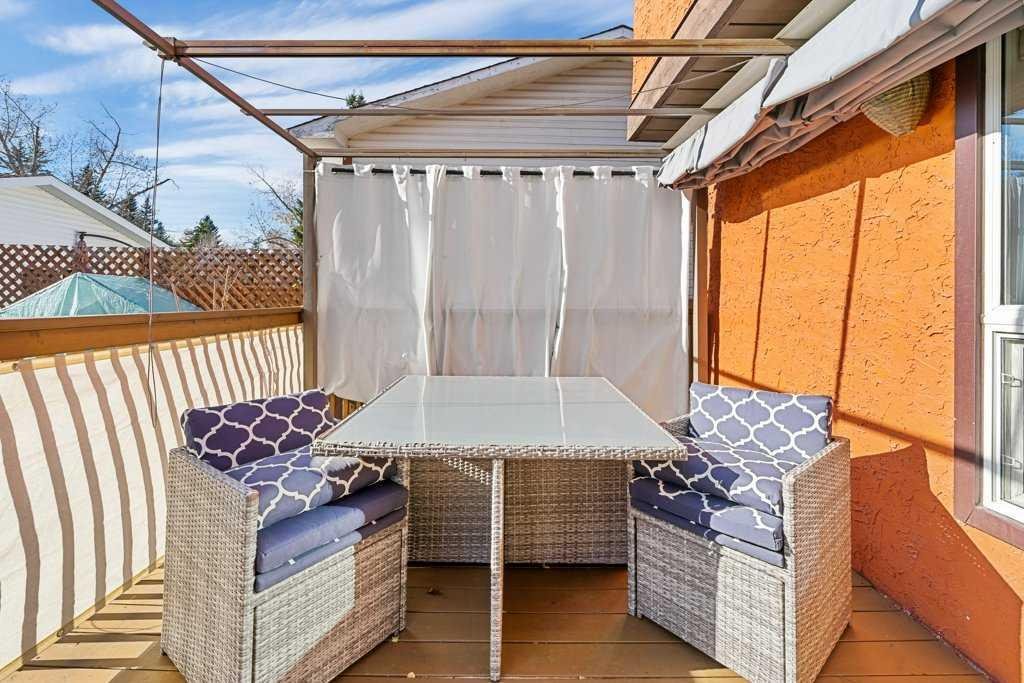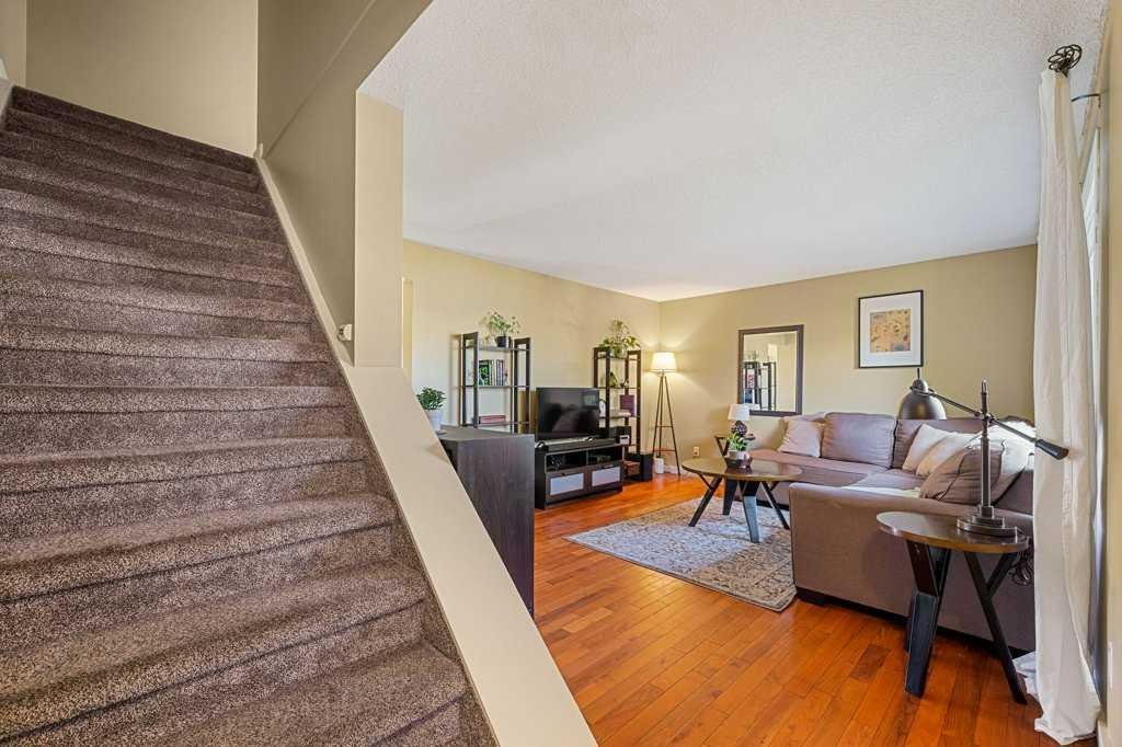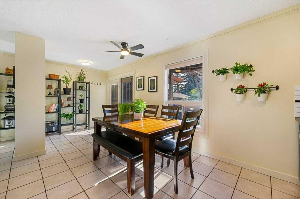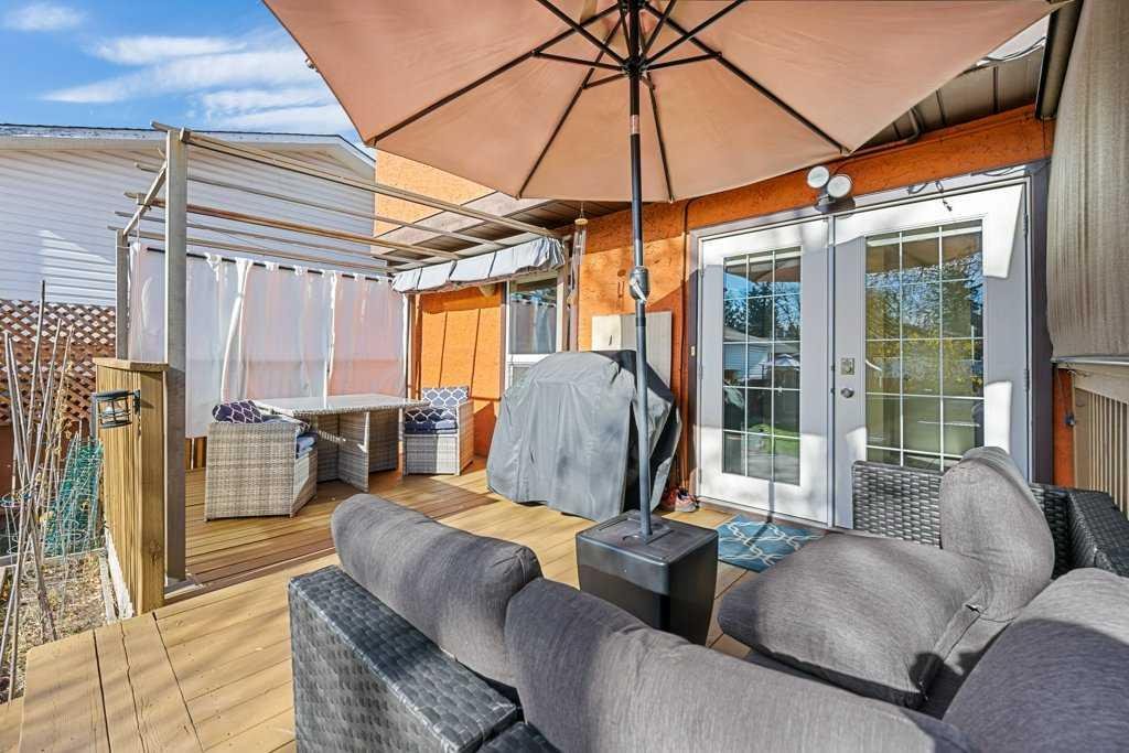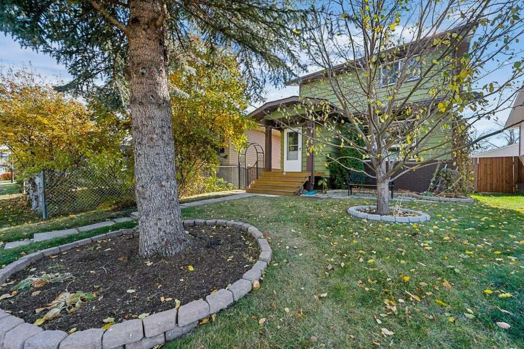 Nestled in a private cul-de-sac only steps from the LRT, this desirable Shawnessy 2 storey home boasts over 1500 sq. ft. of total space, complete Central A/C, plus a finished basement! Be drawn into the spacious living room with large windows that flood the area with natural light! Hardwood floors adorn this area. The bright open kitchen is complete with updated cabinetry and newer stainless steel appliances. The eat-in dining area is complimented by the large windows that give sunny views of the “south-facing” tranquil oversized backyard! The rear deck is large and perfect for entertaining or simply enjoying the sunshine. Ascend to the upper level, complete with the primary master suite, plus two adjacent bedrooms. A 4 piece bathroom completes the upper level. The basement is finished with a family room – tastefully cozy and inviting, plus a large storage and laundry area. Flooring is engineered hardwood. Enjoy being a few steps from the LRT, plus close proximity to Fish Creek Park. Within walking distance to Shawville (grocery stores, theatre, pubs, restaurants, health care services). A healthy lifestyle awaits you…no need to own a car!
