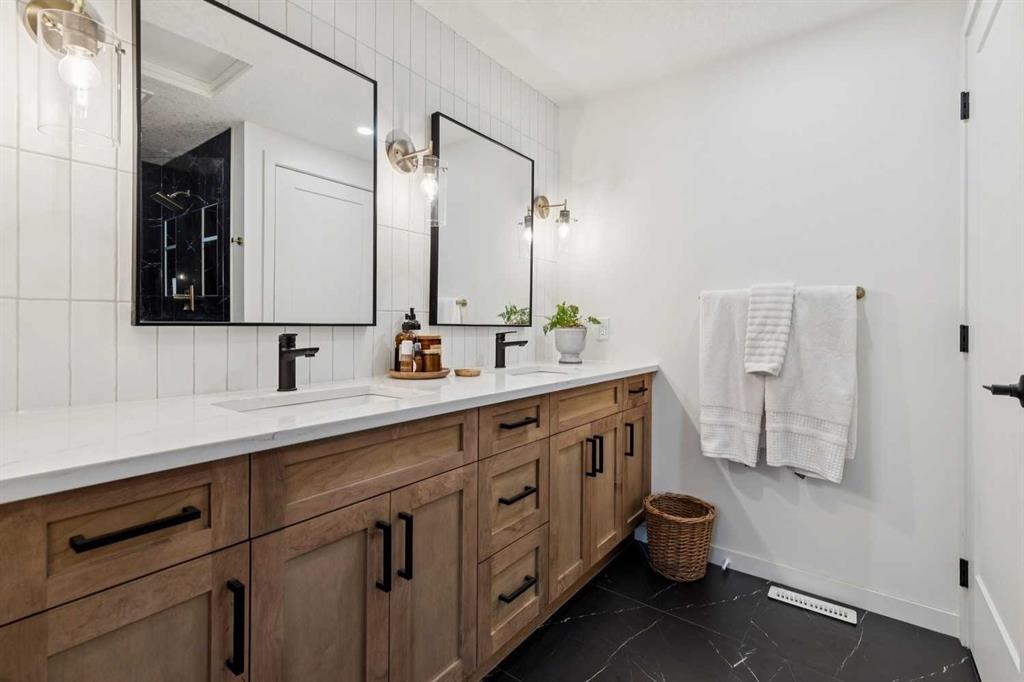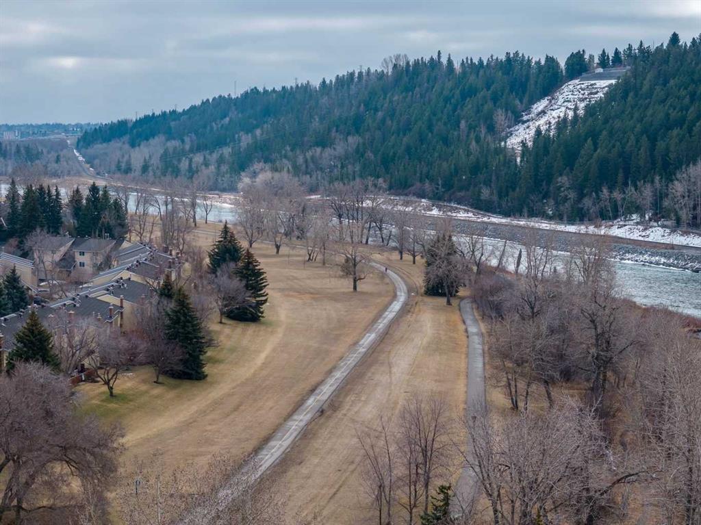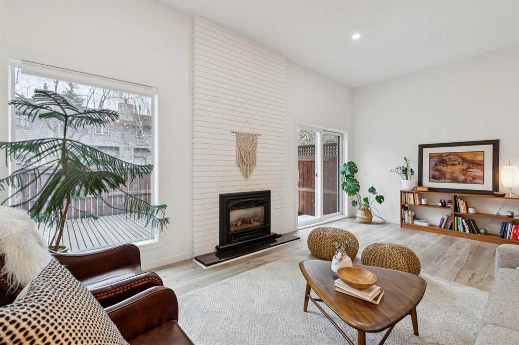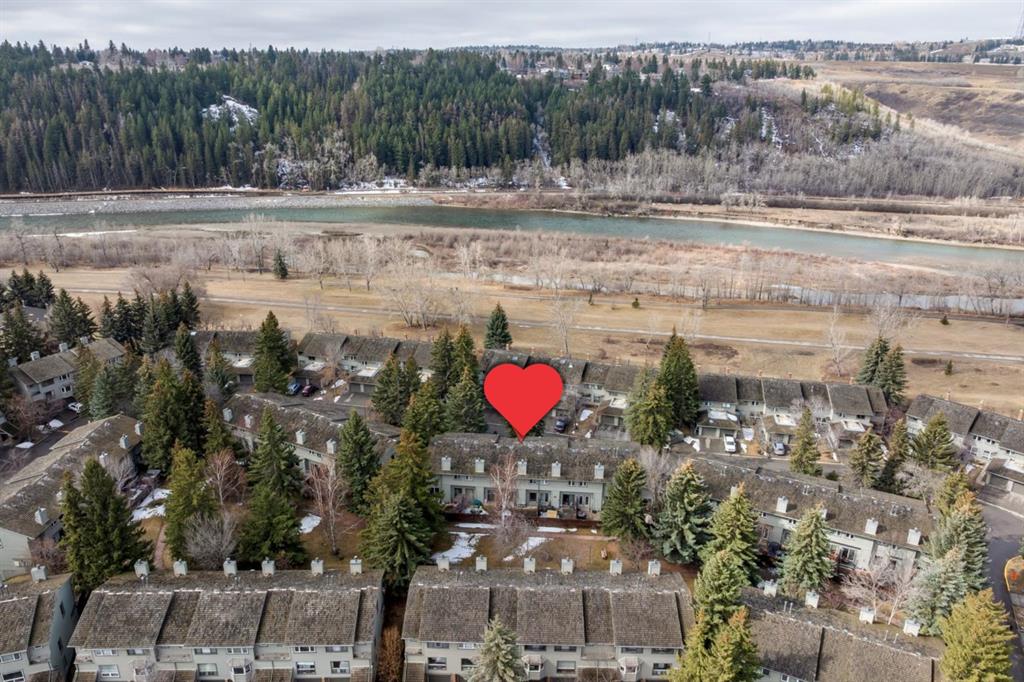 Completely renovated from top to bottom, this high-quality, stylish townhouse offers a rare blend of modern design, thoughtful upgrades, and an unbeatable location with greenspace behind and just one row from the scenic pathways of the Bow River. Featuring a single attached garage with brand-new epoxy flooring and a driveway, this home has been refreshed throughout, including all new windows, creating a truly move-in ready experience. Inside, the main level impresses with a dramatic 2-storey ceiling in the living room, anchored by a cozy gas fireplace and finished with durable LVP flooring, while patio doors lead to a private, FULLY FENCED BACKYARD. The adjacent kitchen and dining area are equally striking, showcasing beautiful updates with a large island with breakfast bar, stainless steel appliances including an oven that has barely been used, stone countertops and backsplash, custom cabinetry, floating open shelves, a large walk-in pantry, and a charming bay window with cafĂ©-style seating, perfect for morning coffee or a work-from-home nook. The dining space features a custom built-in bench, adding both style and function. Also on this level, the show-stopping half bathroom is beautifully finished with tile flooring, granite countertops, bold black walls, and unique, modern design details with updated fixtures throughout. Upstairs, you will find 3 well-sized bedrooms and 2 full bathrooms, including a spacious primary retreat with a large walk-in closet complete with built-ins, new window coverings, and a private, treed outlook with mature evergreens. The ensuite offers double sinks, granite counters, tile flooring, and a large, gorgeous tiled shower, while the secondary bathroom includes a tub/shower combo and granite countertops. The fully finished basement extends your living space with LVP flooring, laundry, a flex room, and convenient under-stair storage. A welcoming front patio sitting area adds to the home’s charm, while the surrounding community offers a unique, nature-filled setting with mature trees throughout, easy access to downtown, the Children’s Hospital, the Foothills Hospital, and quick routes west to the mountains – making this an exceptional opportunity for those seeking both lifestyle and location. The maintenance fees are some of the lowest in the neighbourhood!