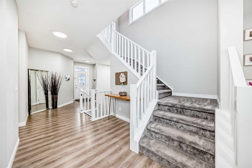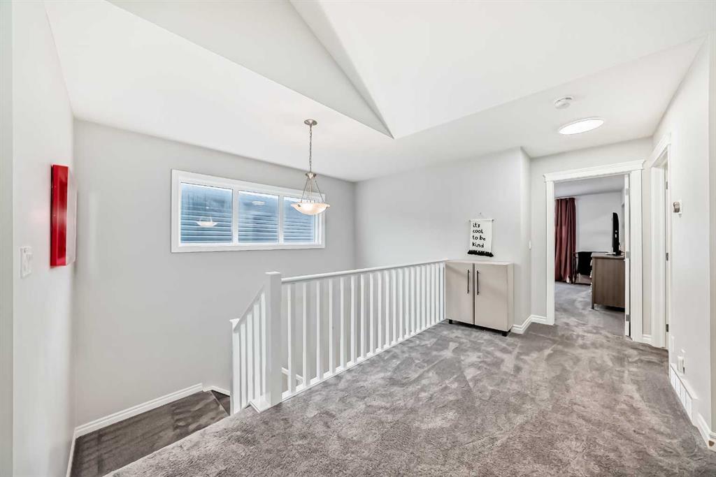 This exceptional home features a south-facing backyard, double attached garage, and air conditioning, with an open-concept main floor showcasing 9-foot ceilings, a gas fireplace, and large windows for abundant natural light; the gourmet kitchen includes a spacious island, quartz countertops, gas cooktop, built-in oven and microwave, and a walk-through pantry off the mudroom, while a main floor office provides the perfect workspace — upstairs, enjoy an oversized bonus room with 14-foot vaulted ceilings and a spa-like primary suite with double sinks, and a walk-in closet connected to the laundry room and 2 additional generous size bedrooms. The undeveloped basement with 9-foot ceilings and large windows offers a great space for the kids to play or finish to your liking. Outside, a deck with gas hook-up is perfect for entertaining and fully fenced backyard with paved back alley access, and a new roof/siding (2022) complete the package. Don’t miss this amazing opportunity! Call your favorite Realtor and book a showing today!