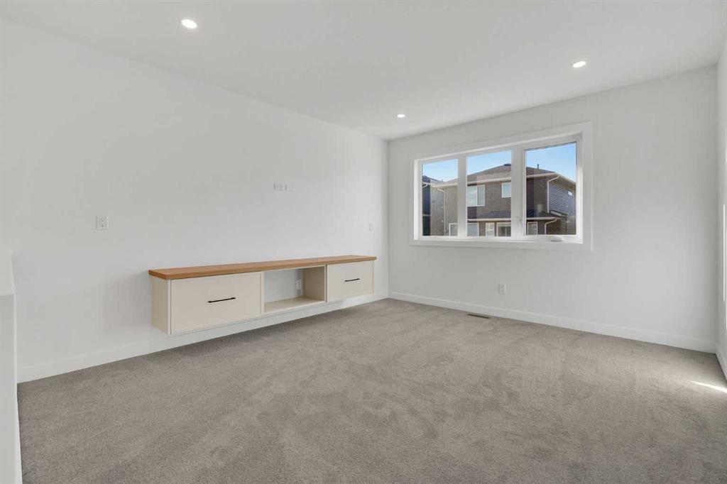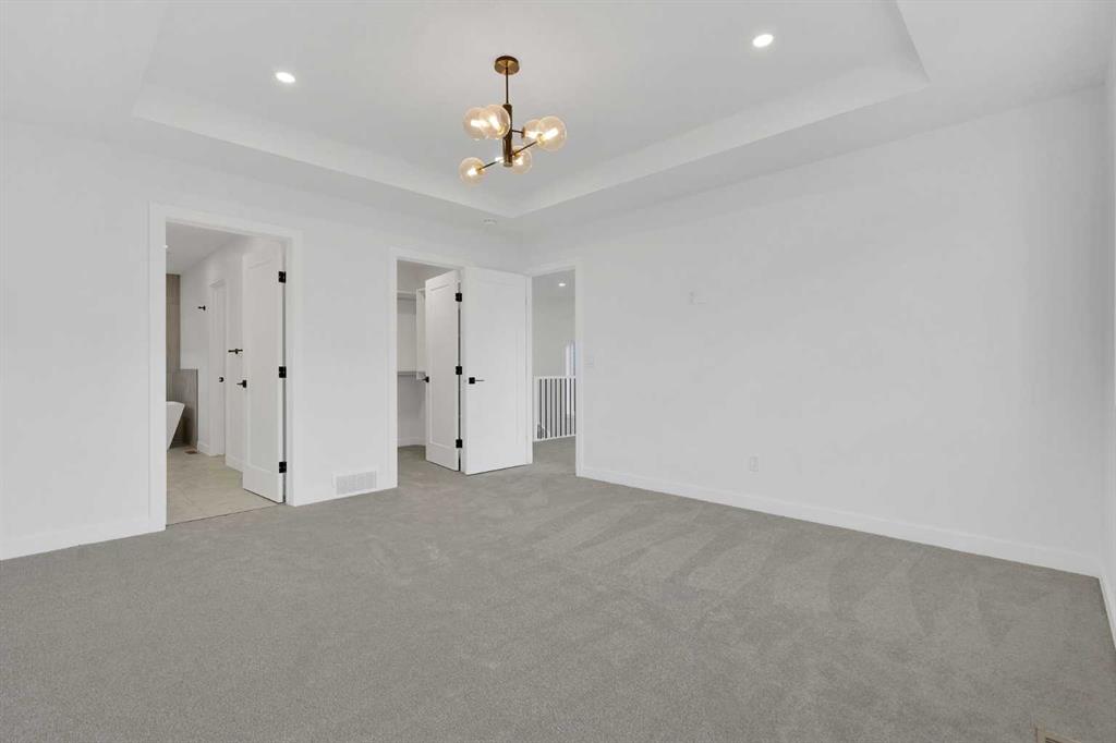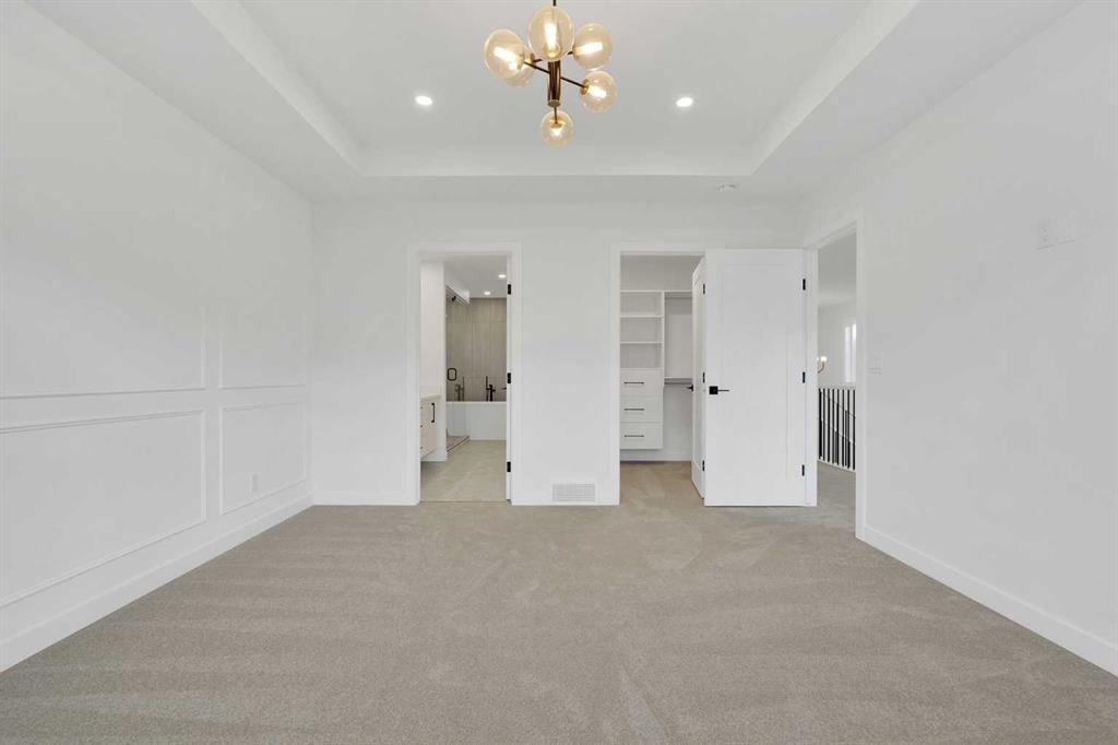Discover luxury living in the beautiful community of Rivercrest in Cochrane, overlooking the Bow River! This brand-new home perfectly combines Elegance and Functionality. Featuring an open concept floor plan, boasting FOUR spacious bedrooms and three and a half bathrooms. As you step into the main foyer, you are greeted by a bright, open-to-above living area. The chef’s kitchen is a highlight, equipped with gourmet appliances, a gas cooktop, a generous island, ample prep space, and a large pantry. The expansive living room features large windows and a cozy gas fireplace, creating a warm and inviting atmosphere. Adjacent to the living area is an elegant dining space that seamlessly connects to a rear deck—perfect for entertaining and enjoying summer evenings. The main floor also includes a convenient two-piece powder room and a custom-built mudroom adjacent to the double-car garage. On the second floor, you will find TWO primary suites. One suite features a spacious walk-in closet and a luxurious five-piece ensuite with a double vanity, a soaker tub, and a walk-in rain shower. The second suite includes a walk-in closet and a three-piece ensuite with a rain shower system. Additionally, there are two well-sized bedrooms that share a four-piece common bathroom, complemented by a linen closet for added convenience. A bright bonus room on this level provides flexible space ideal for a home office, movie nights, or accommodating guests. The unfinished basement awaits your personal touch, offering additional potential for customization. This home is equipped with countless upgrades, ensuring a modern and comfortable lifestyle. With its prime location and exceptional design, this property is a rare find in the Cochrane market. Don’t miss your chance to make this dream home yours! Schedule your private showing today!