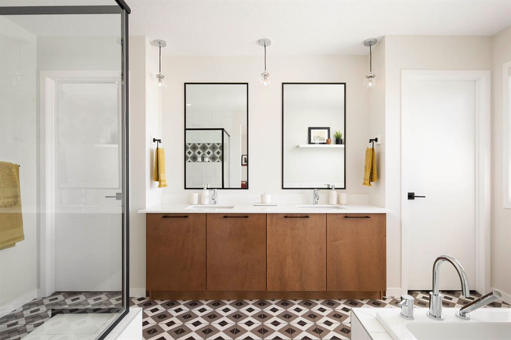 Upstairs, you’ll find three spacious bedrooms, including a luxurious primary suite with a 5-piece ensuite featuring glass accents, stylish tilework, and dual sinks. The primary also includes a flex lifestyle room — ideal as a nursery, home office, or personal gym. A central bonus room with loft, oversized laundry room with sink, and extra storage closet add to the home’s functional appeal.