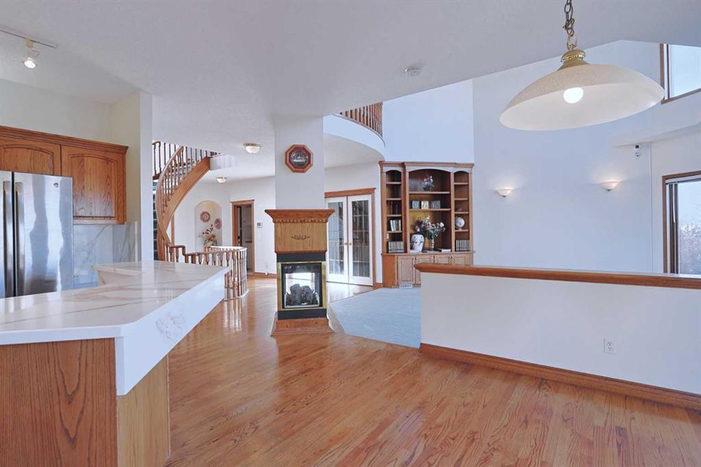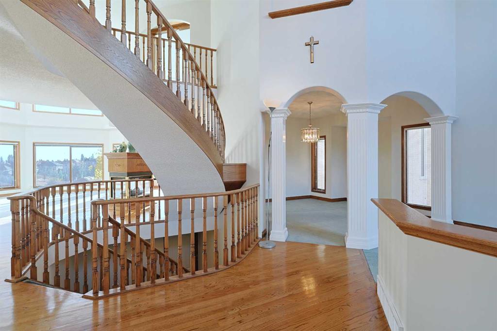First time offered is this incredible custom two storey walkout in the Hamptons, built by Calbridge by the original owners in the exclusive estate area of Hamptons Circle surrounded by panoramic 180 degree views of the neighbourhood & distant horizon. Offering over 3000sqft of living space, this mint condition luxury home enjoys gleaming hardwood floors & new concrete tile roof, total of 4 bedrooms up, oak kitchen with new quartz countertops & all polyB piping replaced with PEX. Available for quick possession, you will love the expansive design of the main floor highlighted by the stunning central staircase, the dramatic 18ft ceilings in the West-facing living room, an elegant dining room perfect for your formal entertaining & dedicated home office with built-in bookcases & glass French doors. At the heart of your new home is the beautiful eat-in oak kitchen with is wall of windows, new upgraded quartz counters & backsplash, walk-in pantry & the appliances include built-in oven, stainless steel stove/convection oven plus brand new garburator & hoodfan. Complemented by soaring 18ft ceilings & bay windows with its beautiful Eastern views, you’ll love relaxing in the fantastic family room with its built-in cabinets & 4-sided gas fireplace. Winding its way up to the 2nd floor, the circular staircase opens into the open concept landing & 4 large bedrooms…including the owners’ retreat with its sweeping views to the East, big walk-in closet & jetted tub ensuite with separate shower & double vanities. The other 3 bedrooms – each with great closet space, also enjoy fantastic views to the West or East. Completing the 2nd floor is the family bathroom with 2 sinks, walk-in linen closet & the landing is big enough for a lounge. The unspoiled walkout level – with roughed-in plumbing for another bathroom, offers tremendous potential for future living…perfectly laid out for perhaps a couple more bedrooms, media room & rec room. Main floor also has a laundry room with built-in cabinets & Samsung washer/dryer. Among the many features & extras of this exact replica of Calbridge’s Medinah showhome: full stucco exterior with Manitoba Sea Bed Stone façade, high ceilings on all 3 levels, digital deadbolts, brand new renovated balcony with Duradek, extensive oak woodwork plus the unique special skylight design. Ready & waiting for a brand new family to make it their very own, located here on this quiet crescent just minutes to the golf course & Hamptons School, neighbourhood shopping plus quick easy access to transit (bus stops & LRT), major retail centers & hospitals, schools & downtown.