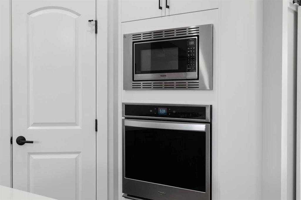 The legal basement suite offers a self-contained living space with a separate entrance. The bright suite includes a modern white kitchen with stainless steel appliances, a four-piece bathroom, and a bedroom. A bonus feature of the suite is its own furnace, allowing for ultimate climate control. Another bonus, a fire suppression system throughout the home, which will help with insurance costs!