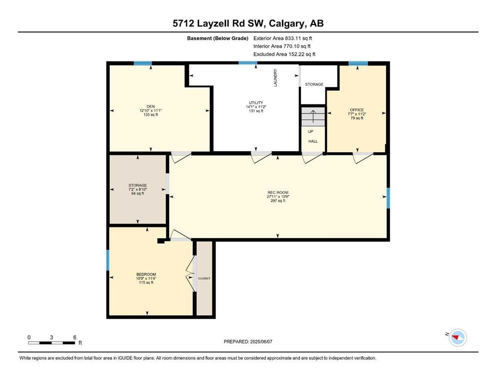 The finished basement expands the living space with a third bedroom, a den, an office, an oversized recreation/games room, storage, and laundry.