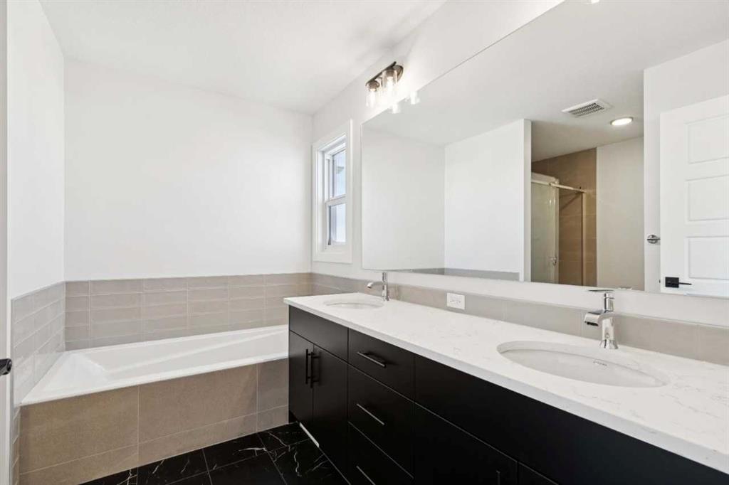 Experience modern comfort in this beautifully finished home featuring LVP flooring, triple-pane windows, and a stylish kitchen with stainless steel appliances, chimney hoodfan, microwave tower, gas range, kitchen island, walk-in pantry, Quartz countertops, undermount sinks, and a Silgranit sink. Enjoy a 10′ x 12′ deck with BBQ gas line rough-in, an electric fireplace, a vaulted bonus room, and upper-floor laundry. The primary bedroom offers a luxurious 5-piece ensuite with a soaker tub, tiled shower with fibreglass base, tile flooring, Quartz countertops, undermount sinks, and a bank of drawers. The fully developed basement of this home features a ONE BEDROOM LEGAL SUITE including full bathroom, 9′ ceilings and convenient side entrance. Built by a trusted builder with over 70 years of experience, this home showcases on-trend, designer-curated interior selections tailored for a home that feels personalized to you. This energy-efficient home is Built Green certified and includes triple-pane windows, a high-efficiency furnace, and a solar chase for a solar-ready setup, plus an electric car charger rough-in, it’s designed for sustainable, future-forward living. Featuring smart home technology, this home includes a programmable thermostat, ring camera doorbell, smart front door lock, smart and motion-activated switches—all seamlessly controlled via an Amazon Alexa touchscreen hub. Some photos are representative.
