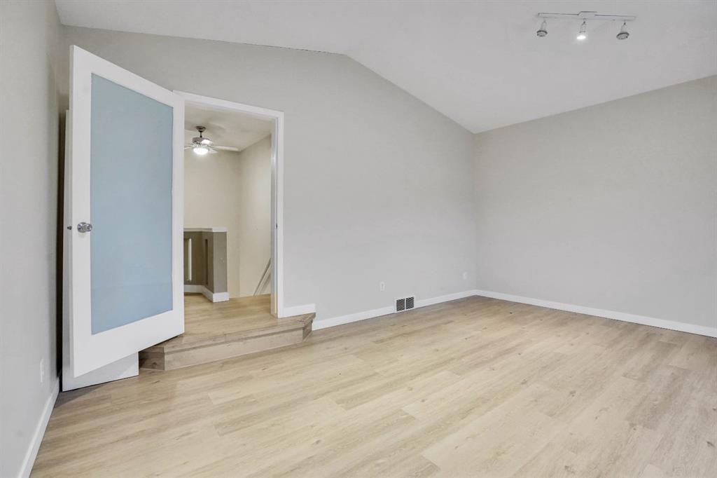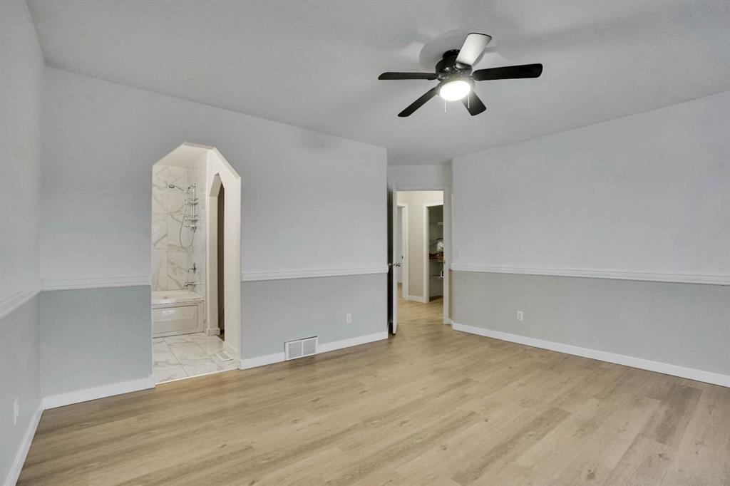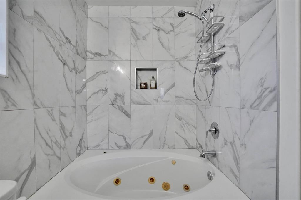 Luxurious vinyl plank flooring extends from the stairs throughout the upper level. The spacious primary bedroom features an upgraded four-piece ensuite with a walk-in closet, quartz countertop vanity, large mirror with storage, beautiful tilework, and a jetted tub for a private retreat. Two additional large bedrooms with closets, a generous storage/linen closet, an upgraded three-piece bathroom, and a versatile bonus room—ideal as a fourth bedroom or home office—complete the upstairs.