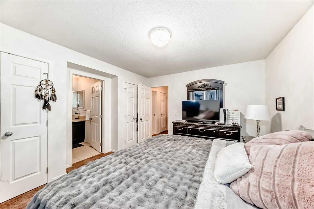 Upstairs, you’ll find three comfortable bedrooms. The primary suite includes his-and-hers closets and a private ensuite. The upper level is completed by a second full bathroom and a generous linen closet.