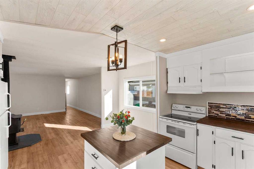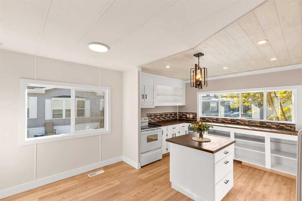 Move-in ready! This fully updated 3-bedroom, 1-bathroom single-wide mobile sits on a large corner lot in the quiet, friendly Aloha Park community and delivers modern comfort with a long list of upgrades. Recent improvements include a new roof, windows, flooring, and fresh paint throughout; butcher-block counters; updated light fixtures; a high-efficiency furnace; a new hot water tank; beautiful tile in the bathroom; privacy/security fencing; a lovely garden space with built-in planter boxes and a raised garden bed; plus a 10′ x 18′ storage shed. The bright, welcoming entry addition features a large bedroom. Inside, the living and dining areas offer an open-concept layout—perfect for relaxing or entertaining by the fireplace. The kitchen sits at the front of the home with abundant natural light, great storage, and ample counter space. Down the hall you’ll find a spacious bedroom, the bathroom with in-suite laundry, and at the back, the private primary bedroom. Outdoors, the fenced yard feels like your own retreat. The garden bursts with color in spring and summer and offers quiet beauty through the cooler months. Enjoy morning coffee under the shaded tree, or spend weekends tinkering in the shed on projects. Don’t wait!