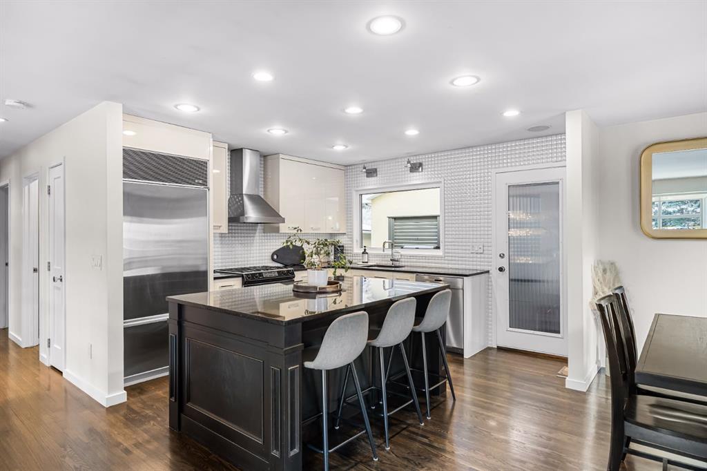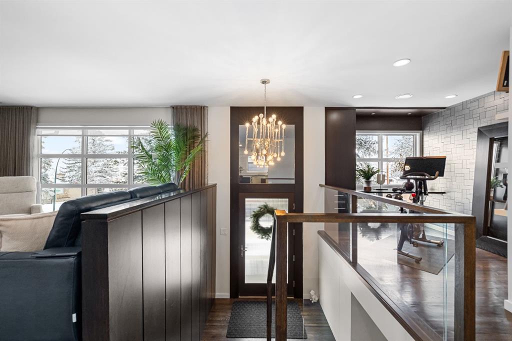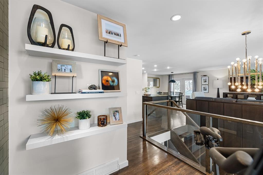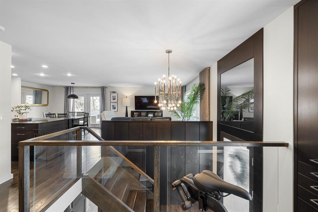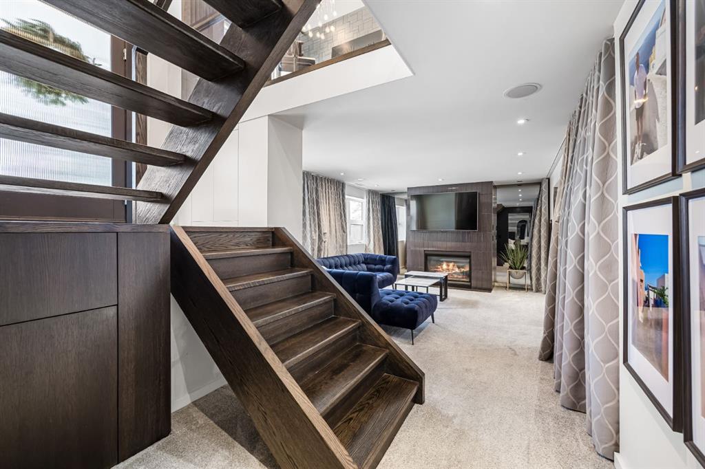 *OPEN HOUSE Jan 10 from 2-4:30 pm* Truly one of a kind, this stunning home has been completely redesigned by acclaimed designer Martine Ast and was featured in Western Living magazine, showcasing a level of finish that rivals a luxury showhome. With over tons of upgrades, including newer and enlarged front windows, the bright upper level offers hardwood flooring and a seamless open-concept layout connecting the kitchen, living, and dining areas. The striking modern kitchen features custom cabinetry, a large working island with eating bar, and top-of-the-line appliances including a Sub-Zero refrigerator, with direct access to a large private south-facing deck. An additional side entry leads to an east-facing covered porch with access to the backyard and garage, while the upper level is completed by an open office area, two spacious bedrooms, and a 4-piece bath. Downstairs, upgraded railings lead to a large recreation room anchored by a custom gas fireplace and featuring a built-in wine rack, while the lower-level primary retreat offers a large dressing room with exceptional closet space and a spa-inspired 4-piece ensuite with heated floors. Additional highlights include custom storage under the stairs and upper landing, a new hot water tank, an oversized, insulated, and heated garage, and RV parking. Ideally located close to schools, parks, and shopping. Do not miss this gem.