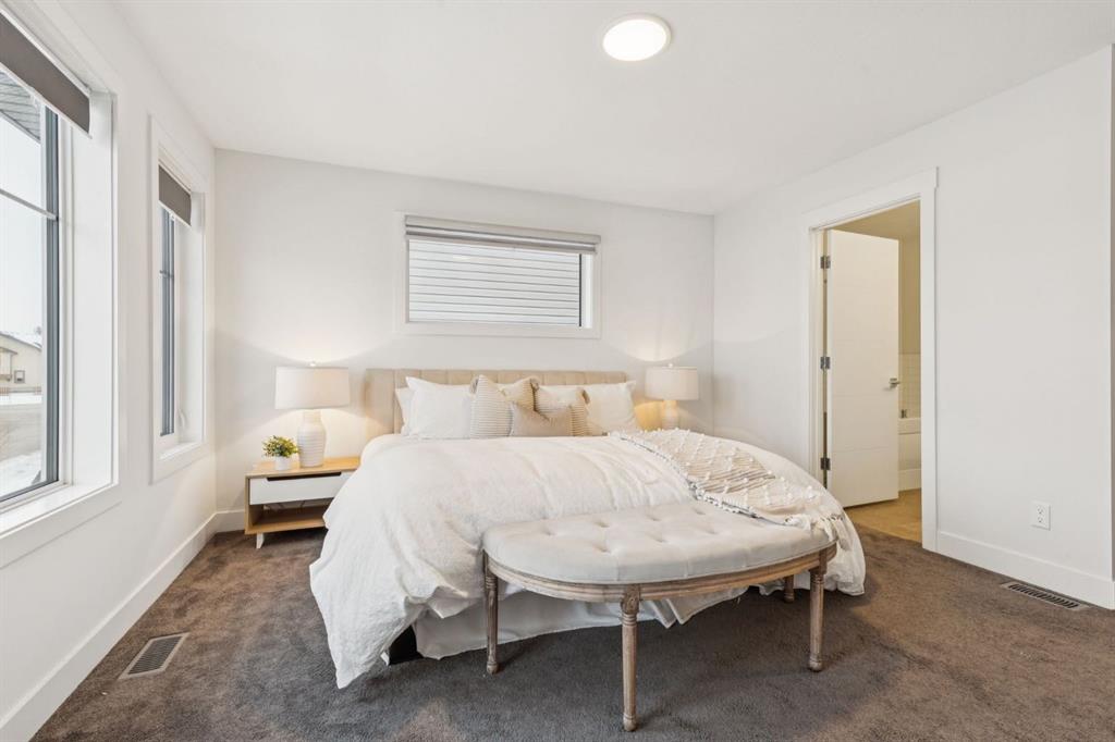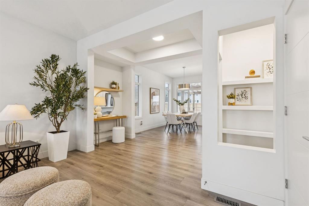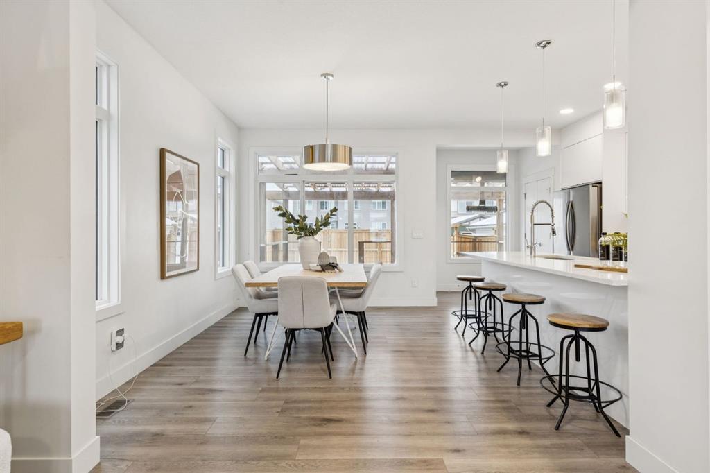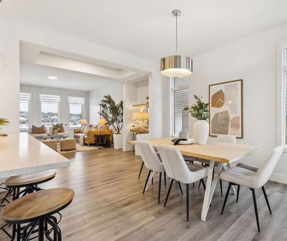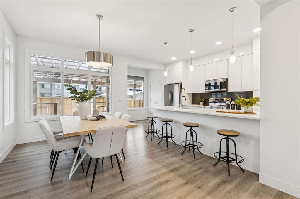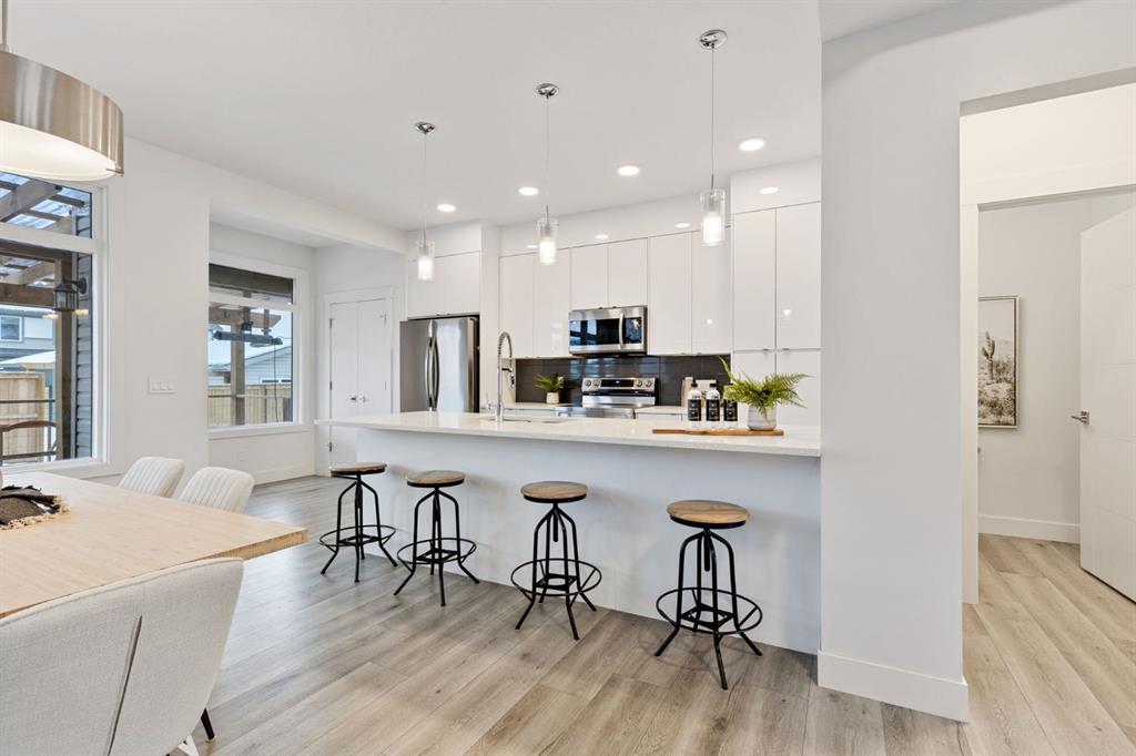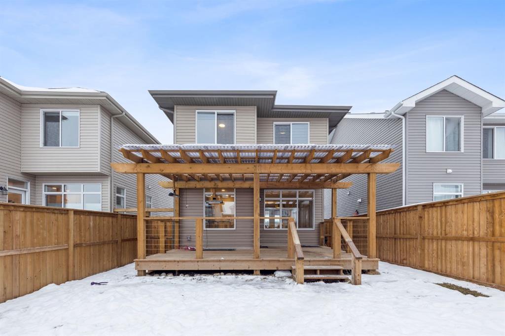 Welcome to 584 River Avenue home offering over 2,200 sq. ft. of comfortable living space, UPGRADES, and a location that truly can’t be beat. Walk to the Bow River pathways, SLS Centre, downtown Cochrane, the off-leash dog park, golf course, and multiple parks. Everything you need is just minutes away. The main level offers an OPEN CONCEPT living and dining area, LARGE WINDOWS for an abundance of that natural light and a WHITE KITCHEN. The kitchen includes STAINLESS STEEL appliances, QUARTZ COUNTERS and direct access to the spacious deck/pergola that spans the back of the home in the backyard. With an added heater perfect for seamless indoor/outdoor entertaining. The second floor features three generous bedrooms, including a spacious primary. Enjoy a large WALK IN closet and a 5-piece ENSUITE with dual sinks, SOAKER TUB, and separate shower. Two additional bedrooms, a full 4-piece bathroom, and a conveniently located LAUNDRY room complete the upper level.