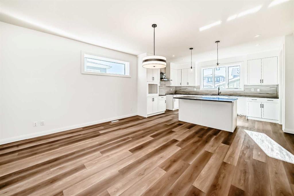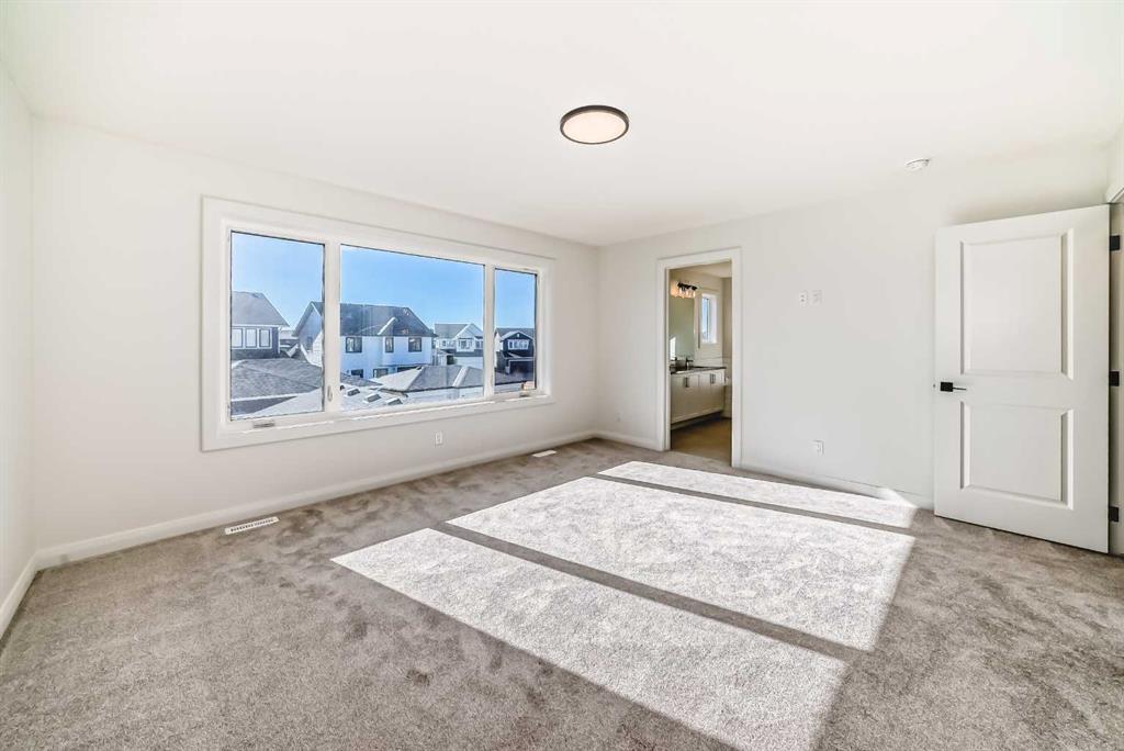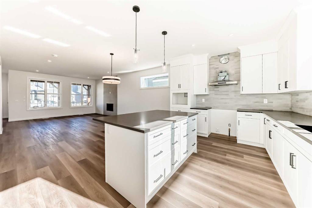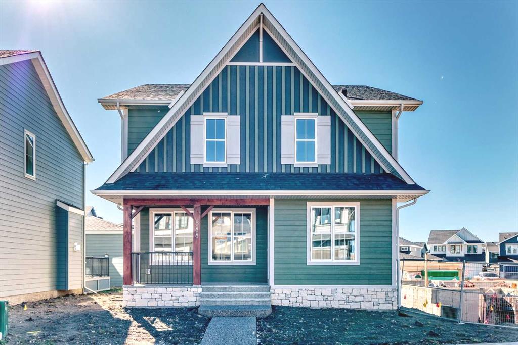 Contemporary sophistication meets everyday living in this 2,359 sq. ft. home in Harmony. The three-bedroom, two-and-a-half-bath layout is thoughtfully planned and finished with elevated interior selections. A generous main-floor office supports work-from-home days, while the living room is anchored by a stylish gas fireplace. The bright white kitchen and dining area flow together for effortless entertaining. Quality finishes run throughout, with a stainless-steel appliance package that includes a gas range, dishwasher, hood fan, and built-in microwave. Upstairs, a versatile bonus room makes a perfect media lounge or play area. The primary suite is a true retreat, complete with a spa-inspired ensuite featuring a beautiful walk-in shower and a large walk-in closet. Convenience continues in the dedicated laundry room with upper cabinetry and a folding counter above the washer and dryer. The unfinished basement is a blank canvas for additional living space and is roughed-in for a future bathroom. Outdoor details include an exposed-aggregate walkway and a stamped-concrete front entry. Parking and storage are easy with the oversized 24′ x 22′ double garage with large 18×8′ door. Extras include: 200 AMP Service, 2 stage furnace, 9′ basement ceiling height, Granite counters, and a fibre glass front door. Set within Harmony, one of the most sought-after lake communities, you are just minutes from parks, pathways, golf, lakes, and quick mountain access.