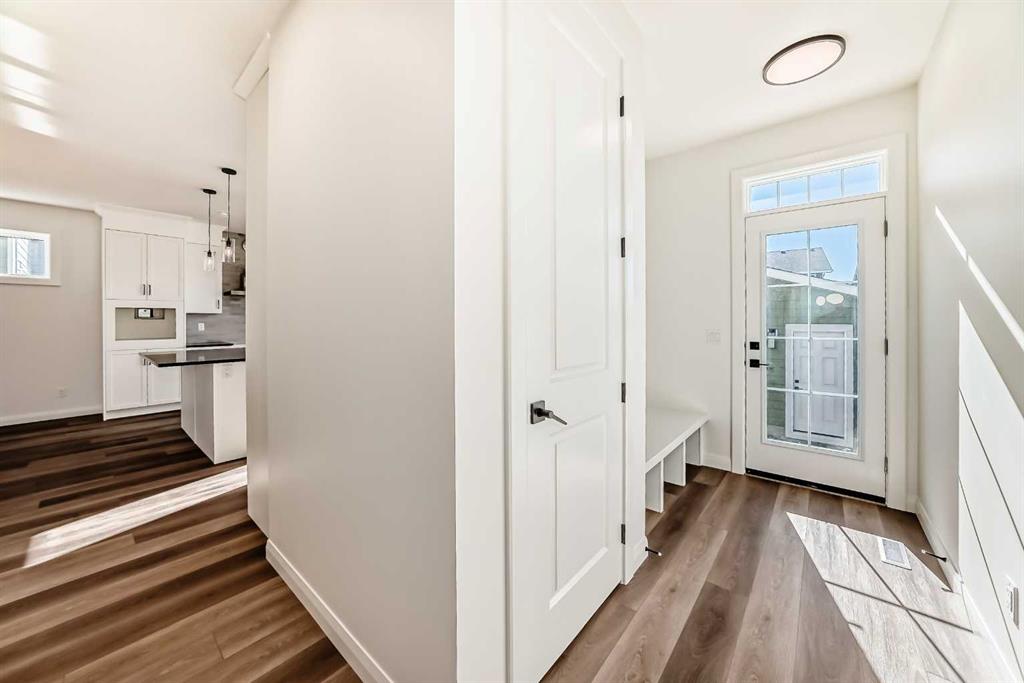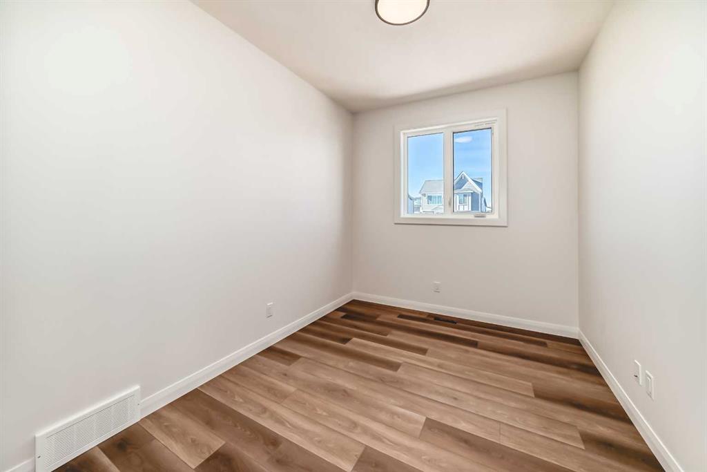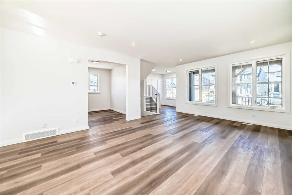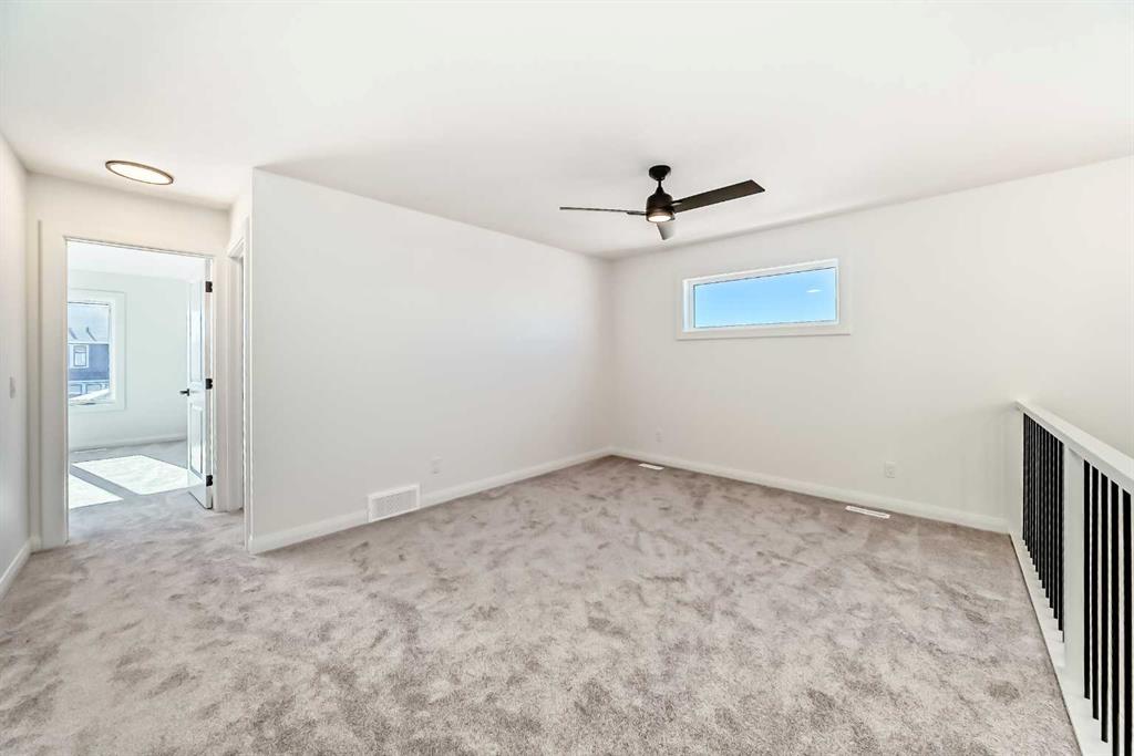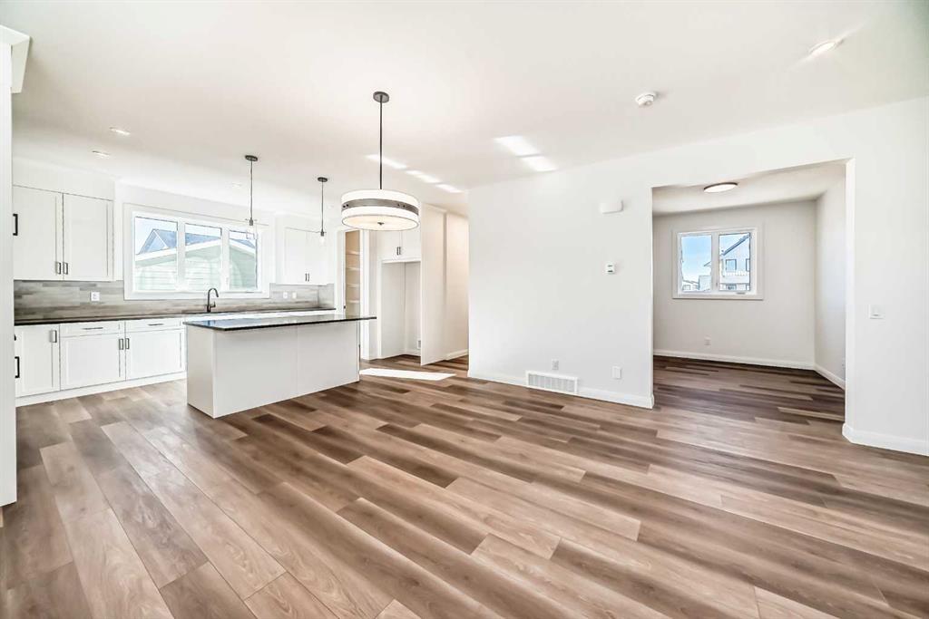 Contemporary sophistication meets everyday living in this 2,359 sq. ft. home in Harmony. The three-bedroom, two-and-a-half-bath layout is thoughtfully planned and finished with elevated interior selections. A generous main-floor office supports work-from-home days, while the living room is anchored by a stylish gas fireplace. The bright white kitchen and dining area flow together for effortless entertaining. Quality finishes run throughout, with a stainless-steel appliance package that includes a gas range, dishwasher, hood fan, and built-in microwave. Upstairs, a versatile bonus room makes a perfect media lounge or play area. The primary suite is a true retreat, complete with a spa-inspired ensuite featuring a beautiful walk-in shower and a large walk-in closet. Convenience continues in the dedicated laundry room with upper cabinetry and a folding counter above the washer and dryer. The unfinished basement is a blank canvas for additional living space and is roughed-in for a future bathroom. Outdoor details include an exposed-aggregate walkway and a stamped-concrete front entry. Parking and storage are easy with the oversized 24′ x 22′ double garage with large 18×8′ door. Extras include: 200 AMP Service, 2 stage furnace, 9′ basement ceiling height, Granite counters, and a fibre glass front door. Set within Harmony, one of the most sought-after lake communities, you are just minutes from parks, pathways, golf, lakes, and quick mountain access.