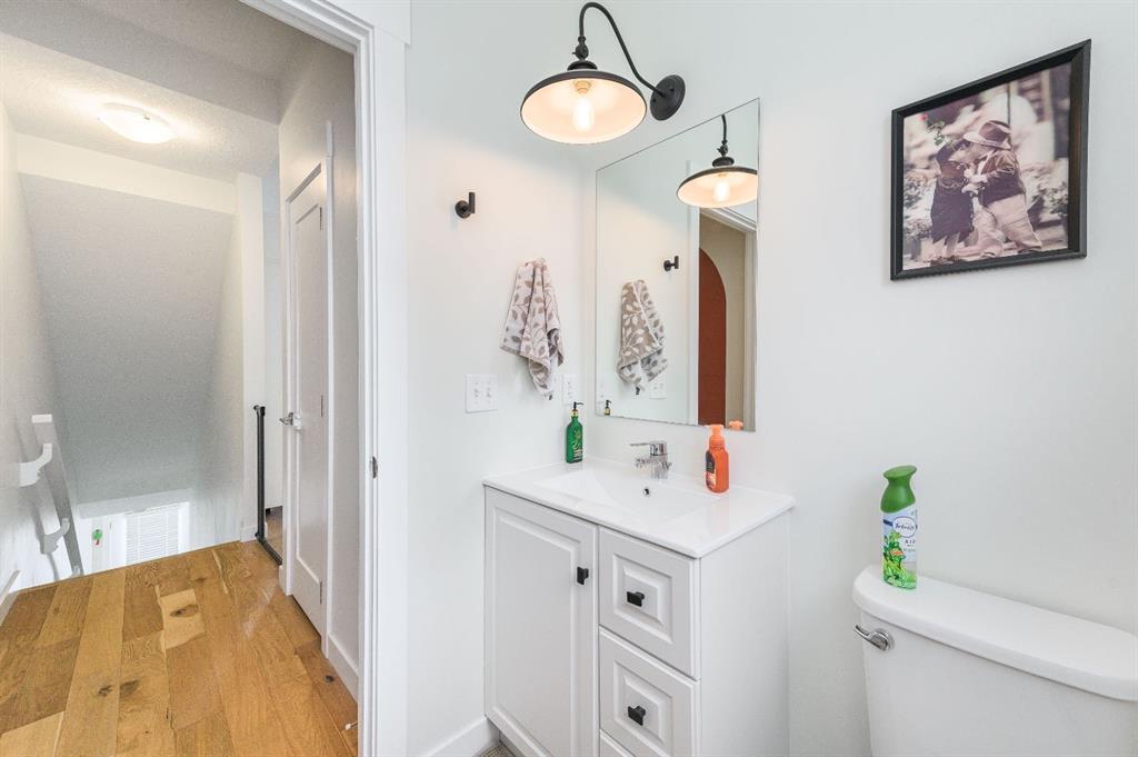 Welcome to a beautifully upgraded FORMER TRUMAN SHOW HOME with a DOUBLE ATTACHED GARAGE and a smart, functional 3-storey design in one of Chestermere’s most convenient locations. Situated on the exterior of the complex for added privacy and extra street parking, this MOVE-IN READY home is thoughtfully upgraded throughout. The main floor offers a versatile DEN/OFFICE with added built-in shelving, under-stair storage, an upgraded half bath vanity, and a modern LED fan/light combo — perfect for working from home.