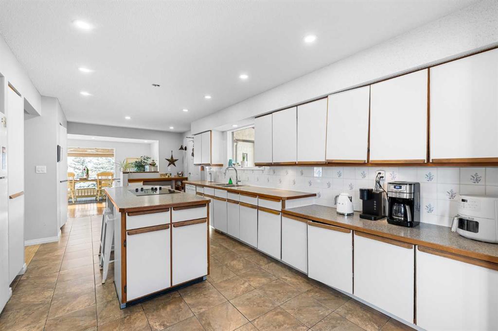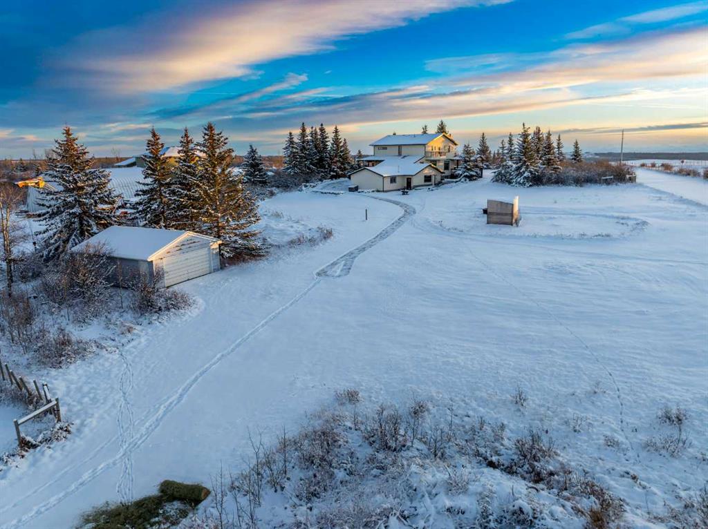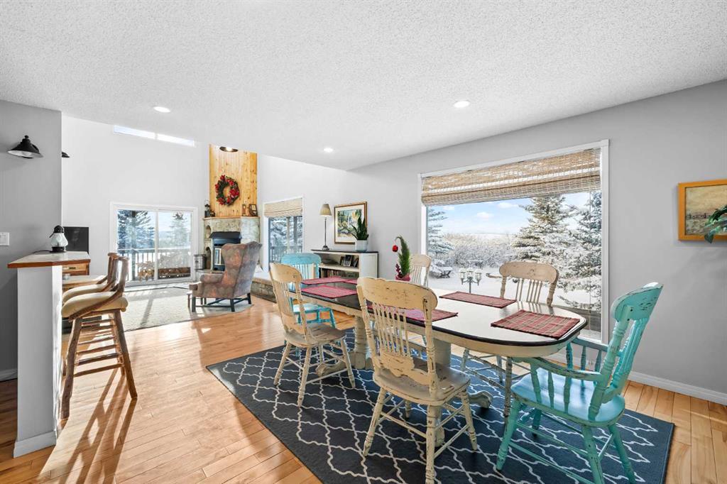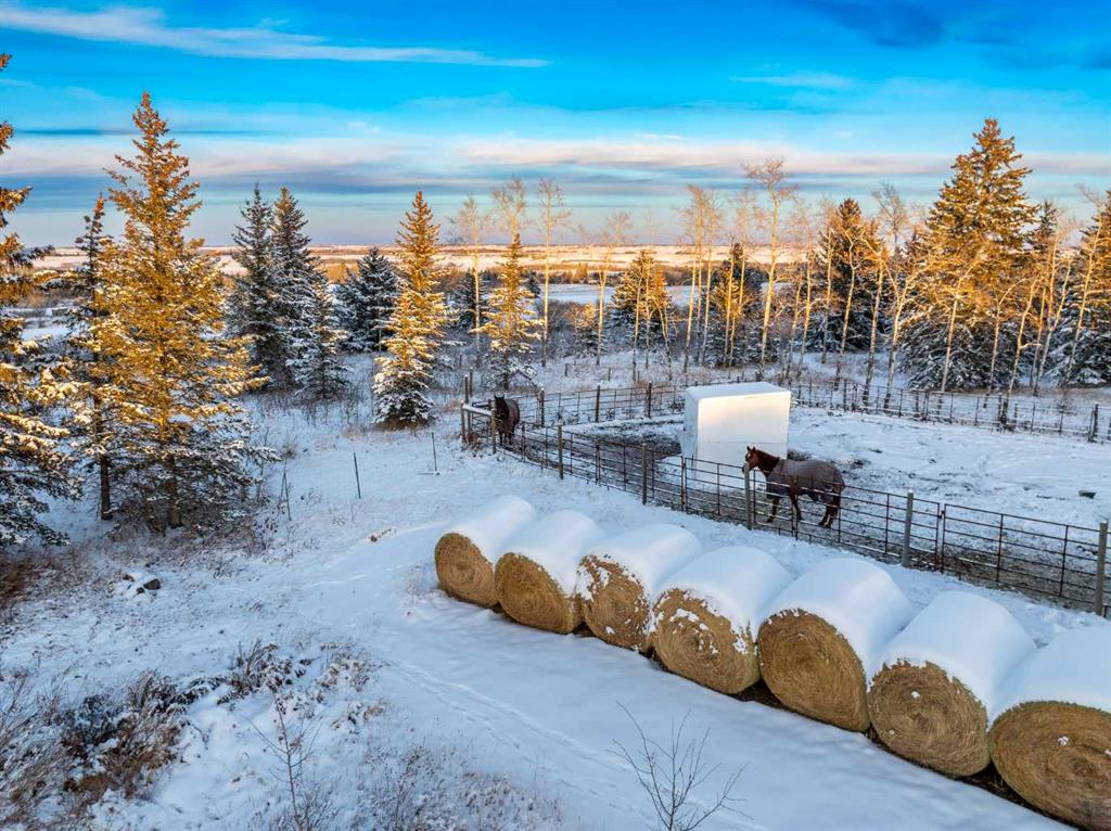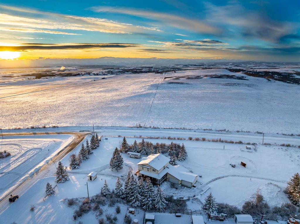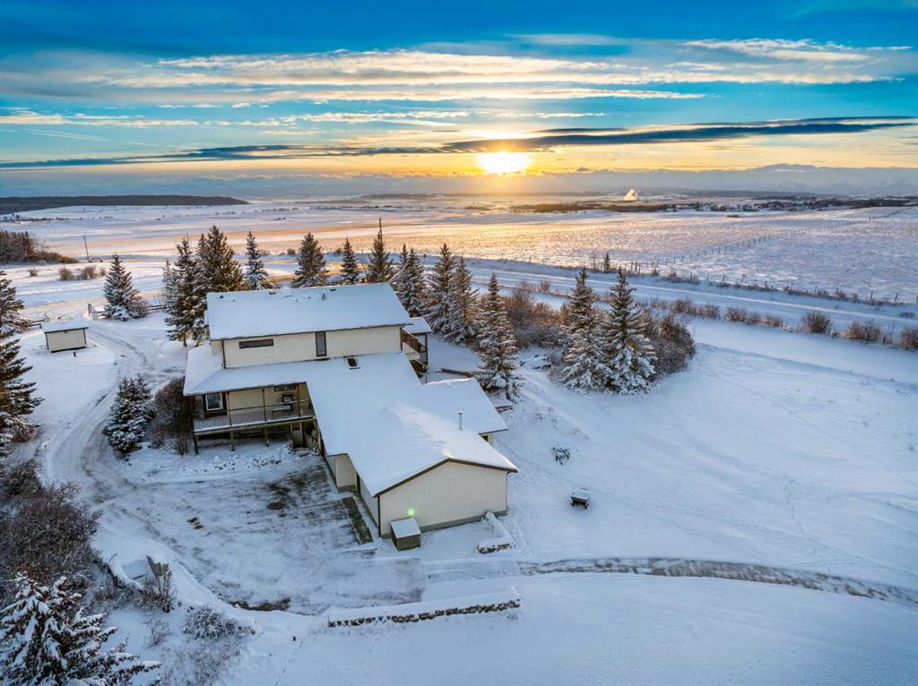 Nestled on 4 acres in an idyllic setting with sweeping views of the majestic Rocky Mountains, this 2-story home offers expansive outdoor space, attached 4 car heated garage, the warmth of a wood-burning fireplace and fulfilment of the dream of owning land in beautiful Alberta. As you step inside the private entrance, there’s a convenient front office that flows into an open and airy floor plan, designed to maximize both functionality and comfort. An impressive vaulted living room with a stunning wood-burning fireplace creates a cozy focal point that draws you in, perfect for chilly nights or relaxing after a day of outdoor adventures. The rich, natural finishes throughout the home complement the rustic elegance of the surroundings, while large windows flood the space with natural light and offer incredible mountain views. The massive kitchen is a dream space for culinary lovers featuring tons of counter space, a separate pantry, a huge island and cabinetry thats extends across the entire space. Whether preparing meals for family or hosting gatherings, this kitchen provides everything you need for both style and practicality. A small solarium with a wall of windows at the end of the kitchen provides an excellent place for cozy seating or plant paradise. Adjacent to the kitchen is an oversized dining area, perfect for family dinners or entertaining guests, with large windows framing picturesque views of the surrounding rolling fields, foothills and mountains. A convenient mud room, laundry room and second staircase that provides access to the deck, the basement, the attached 4 car garage and additional storage. Upstairs, you’ll find 3 generously sized bedrooms, each with large windows that take full advantage of the scenic vistas. The primary suite offers a luxurious retreat, complete with a large closet and a spa-like ensuite bathroom. An updated 5 piece bathroom serves the other 2 bedrooms. 2 small exterior decks finish off the upstairs! The fully finished basement provides endless possibilities, from a home theatre and game room to a private gym or additional guest quarters. With a full bathroom, sauna, and plenty of storage, this space can easily accommodate any lifestyle needs. The private road leading to the home ensures peace and quiet, while the proximity to major highways allows for an easy commute to nearby amenities, shopping, and dining. The views of the Rocky Mountains are simply unparalleled. For those with a love of horses you’ll find the added benefit of 2 horse shelters, paddocks and additional detached garage. These versatile structures could also serve as workshops, barns, or additional storage. The heated 4-car garage offers an abundance of storage and workspace, making it ideal for car enthusiasts, hobbyists, or anyone in need of extra space. This property offers an unparalleled lifestyle for those who appreciate the beauty and serenity of rural living without sacrificing the conveniences of modern life.