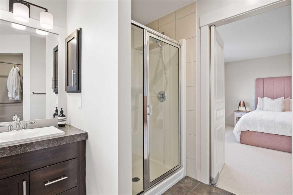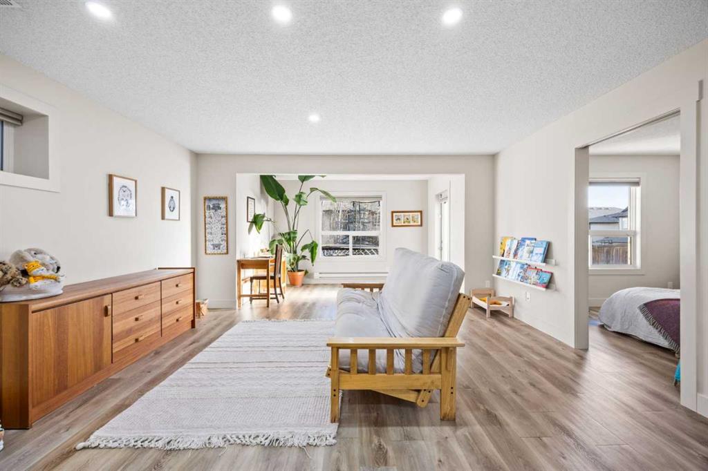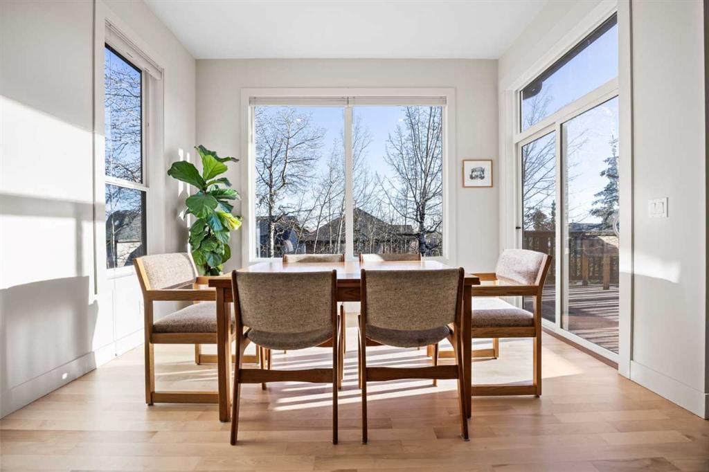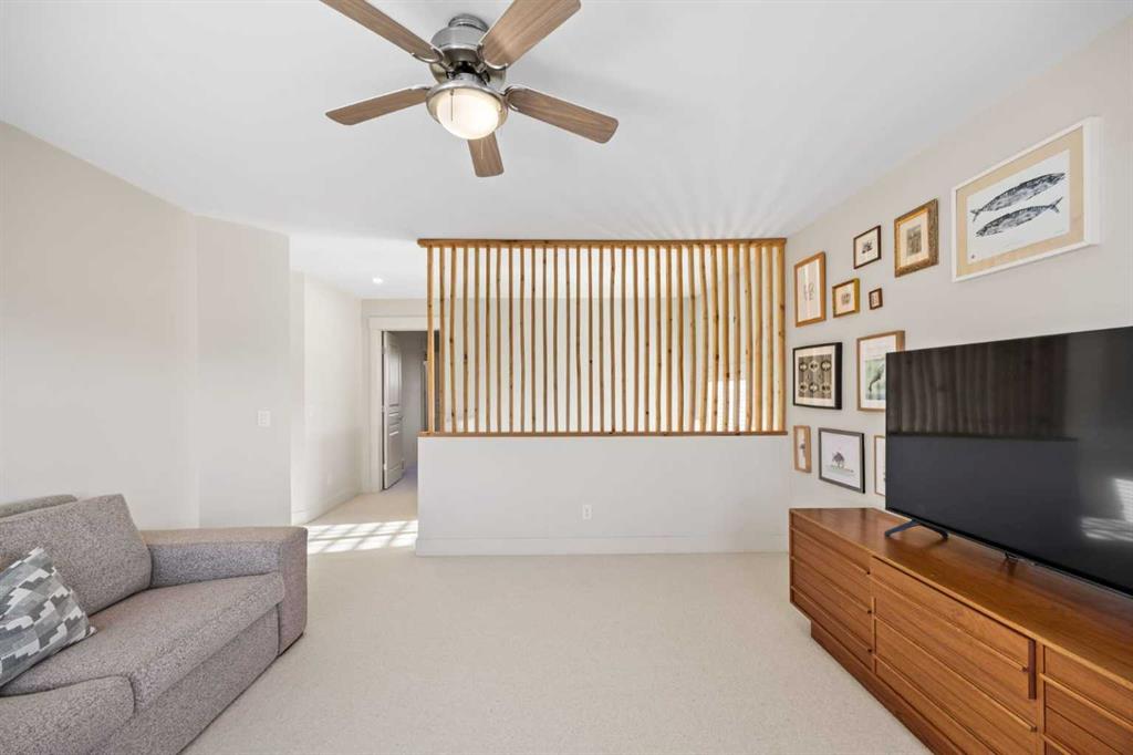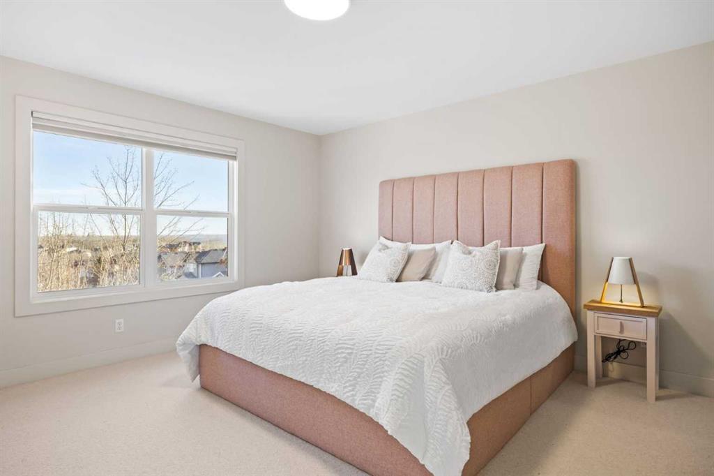 Upstairs, three generous bedrooms, a full family bathroom, and a spacious bonus room with custom decorative wood screening continue the home’s refined character. New wool carpet with premium underlay adds comfort and durability. The primary bedroom serves as a private retreat, offering mountain views, a well-appointed ensuite, and solar-control window film for year-round comfort and efficiency.