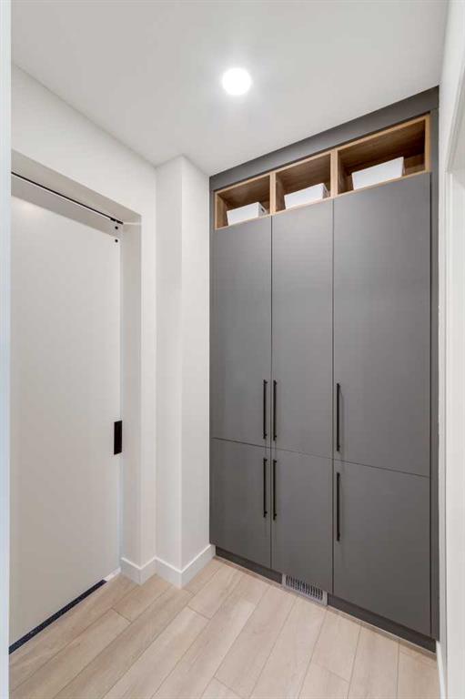 In the kitchen, the details go beyond builder-basic: QUARTZ COUNTERS, a Silgranit undermount sink, GAS RANGE under a CUSTOM HOOD, and a backsplash that climbs full-height around the window. The dining area includes a BUILT-IN CONSOLE that doubles as a hosting tool — the perfect place to serve, set out, or even pull up a stool for extra seating. From here, meals move easily onto the 20’ REAR DECK where the gas line is ready to go. A POCKET OFFICE near the front door gives work and study their own spot, while MUDROOM CABINETRY shoulders the chaos of backpacks, boots, and grocery bags.