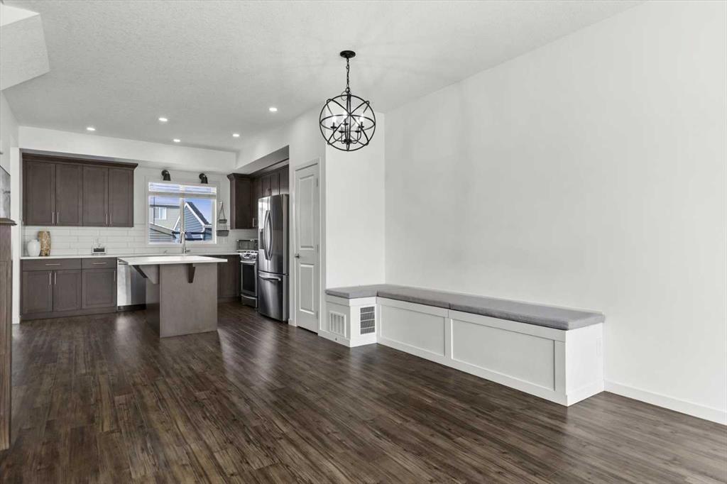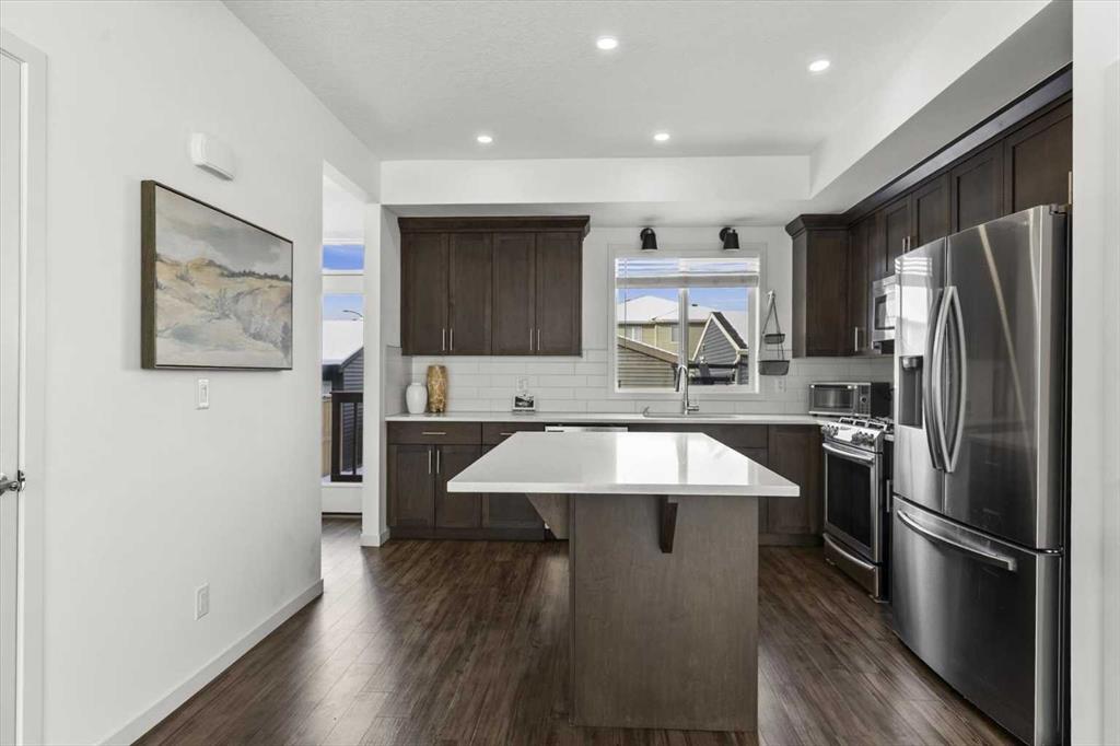 Welcome to this lovingly maintained home where modern craftsmanship meets one of Calgary’s most thoughtfully designed family communities. This immaculate 3-bedroom, 3.5-bath home with fully finished basement and oversized double detached garage represents the rare intersection of meticulous build quality and resort-style living. From the moment you step inside, the home’s pride of ownership throughout the over 1,700 square feet of usable living space is unmistakable. Nine-foot ceilings and expansive windows flood the air-conditioned open-concept floor plan with natural light, highlighting upgraded vinyl plank flooring that flows seamlessly throughout. The chef-inspired kitchen anchors the space with a premium stainless steel appliance package including a gas range, quartz countertops, custom maple cabinetry, and convenient centre island with breakfast bar, perfect for weekday mornings & weekend entertaining alike. The adjacent dining area features a built-in bench with hidden storage, while the spacious living room opens the floor plan beautifully. A convenient mudroom & powder room complete this level, keeping daily life organized and effortless. Upstairs, the oversized primary suite offers morning light, walk-in closet, and a four-piece ensuite with soaker tub/shower combination. Two additional generous bedrooms, upper-floor laundry, and another full bath provide comfortable family living. Central air conditioning throughout keeps every season comfortable. The true standout? A fully finished basement with separate side entrance, this is a game-changing feature that transforms daily living and future possibilities. This private entry allows teenagers their own space, provides seamless access for guests or extended family, and offers the flexibility for rental or multi-generational living down the road. With its open-concept living area, fourth full bathroom, and ample storage, the basement delivers immediate functionality while preserving future options. Step outside to your private backyard retreat: fully fenced & professionally landscaped with a sprawling 32′ x 15′ deck, separate chain-link dog run, and fire pit area. This private outdoor oasis is ideal for hosting summer barbeques or Alfresco dining. The oversized detached garage with back lane access ensures parking and storage will never be a concern. But here’s what elevates this opportunity beyond the home itself. Wolf Willow’s lifestyle! This master-planned community wraps around natural green space and Bow River Valley, offering 9 kilometres of pathways connecting parks, themed playgrounds, and a 9-acre off-leash dog park. The Wolf Willow Crossing commercial hub brings cafes, services, and conveniences steps from your door, while Fish Creek Provincial Park provides year-round recreation. Seamless access to Macleod Trail, Stoney Trail, Chaparral, and Walden amenities, connects to everything Calgary offers while enjoying the tranquility and amenities of amazing Wolf Willow!