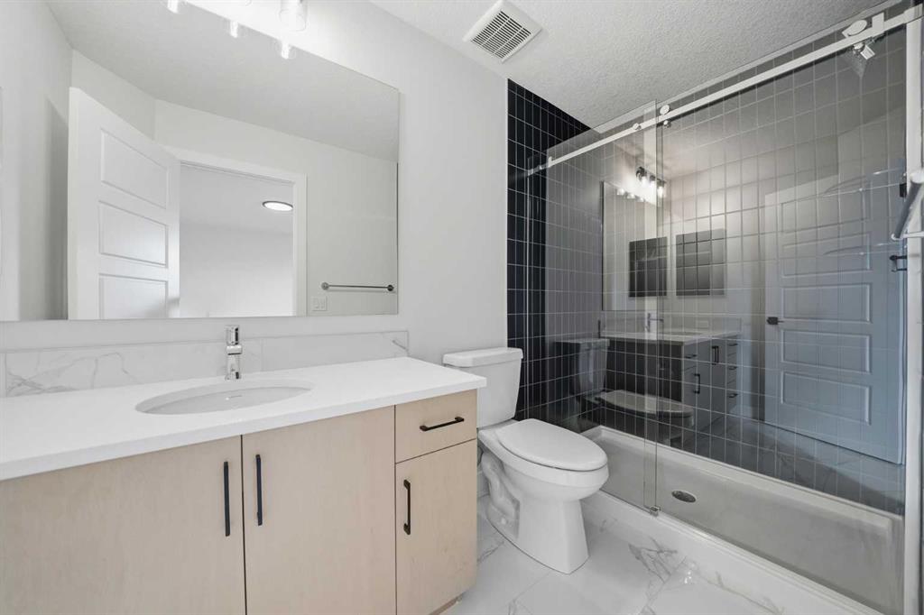 Upstairs you’ll find a central loft space that works well as a family room, office, or play area. The primary bedroom includes a walk-in closet and a 3-piece ensuite with a tiled walk-in shower. Two additional bedrooms, a full bathroom, and upper floor laundry complete the level.