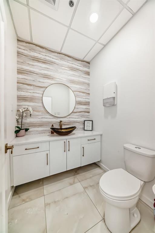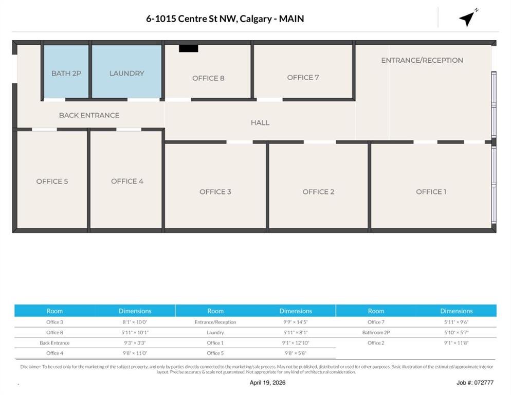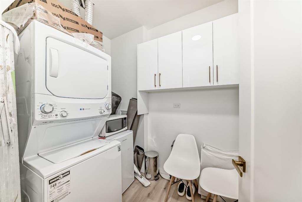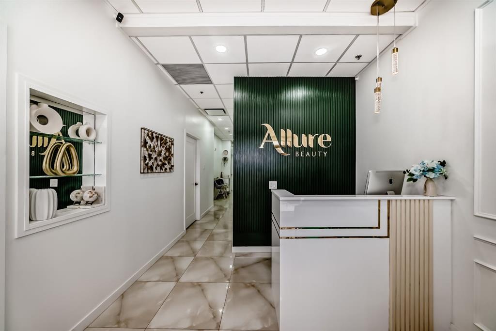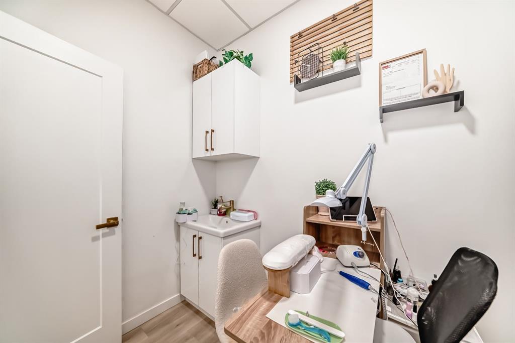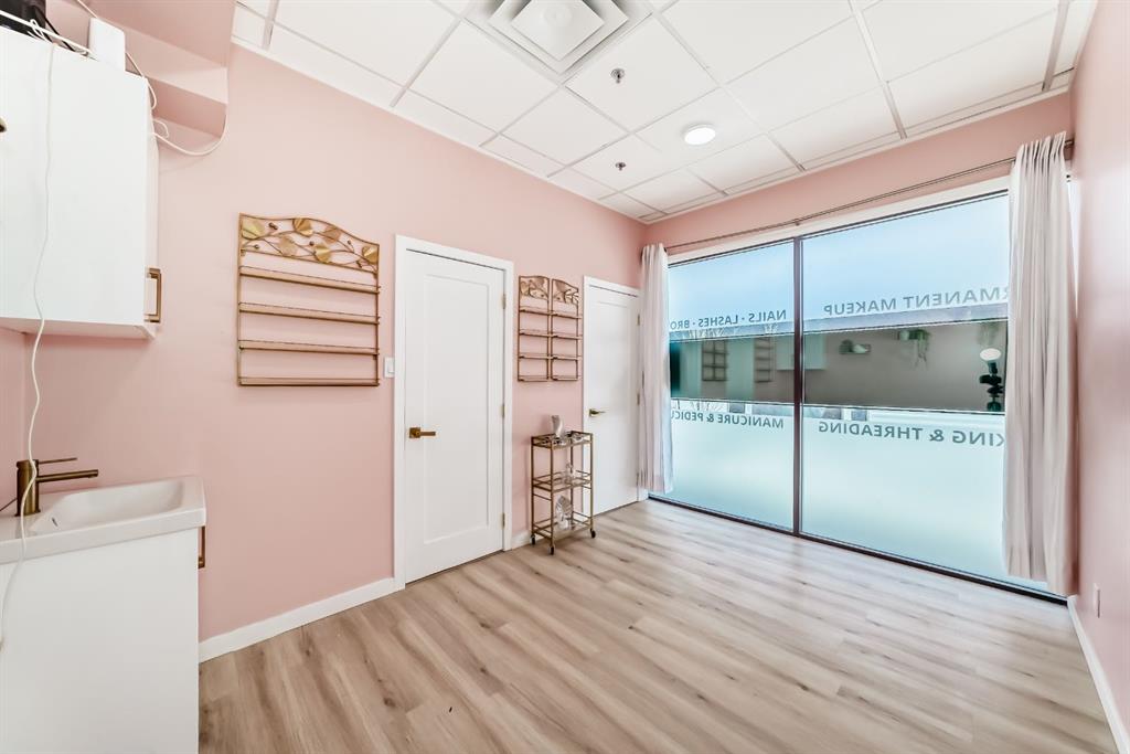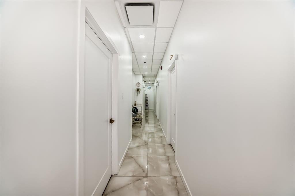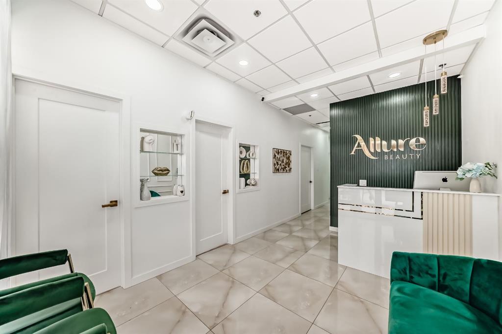 Turn-key professional commercial condominium unit with full clinical infrastructure. Currently operating as an established aesthetics clinic, this impeccably maintained 1,060 square foot suite presents a rare opportunity for medical, wellness, or high-end aesthetics users seeking a fully built-out space. Positioned along the high-exposure Centre Street NW corridor, the unit has been thoughtfully designed to support multiple practitioners while maintaining a refined, boutique atmosphere. The layout features eight private treatment rooms, each equipped with its own sink; an extensive and costly infrastructure upgrade. The space is anchored by a polished front reception and client waiting area that delivers a strong first impression. A central hallway provides efficient circulation, complemented by a private two-piece bathroom and a dedicated laundry and utility room to support daily operations. Dual access points enhance functionality, with a welcoming front entrance for clients and a separate rear exit ideal for staff and deliveries. Two assigned underground parking stalls are included, offering added convenience in this highly accessible inner-city location. This is a rare opportunity to secure a fully plumbed, high-density professional space in a prime Calgary corridor, with immediate usability and long-term flexibility.