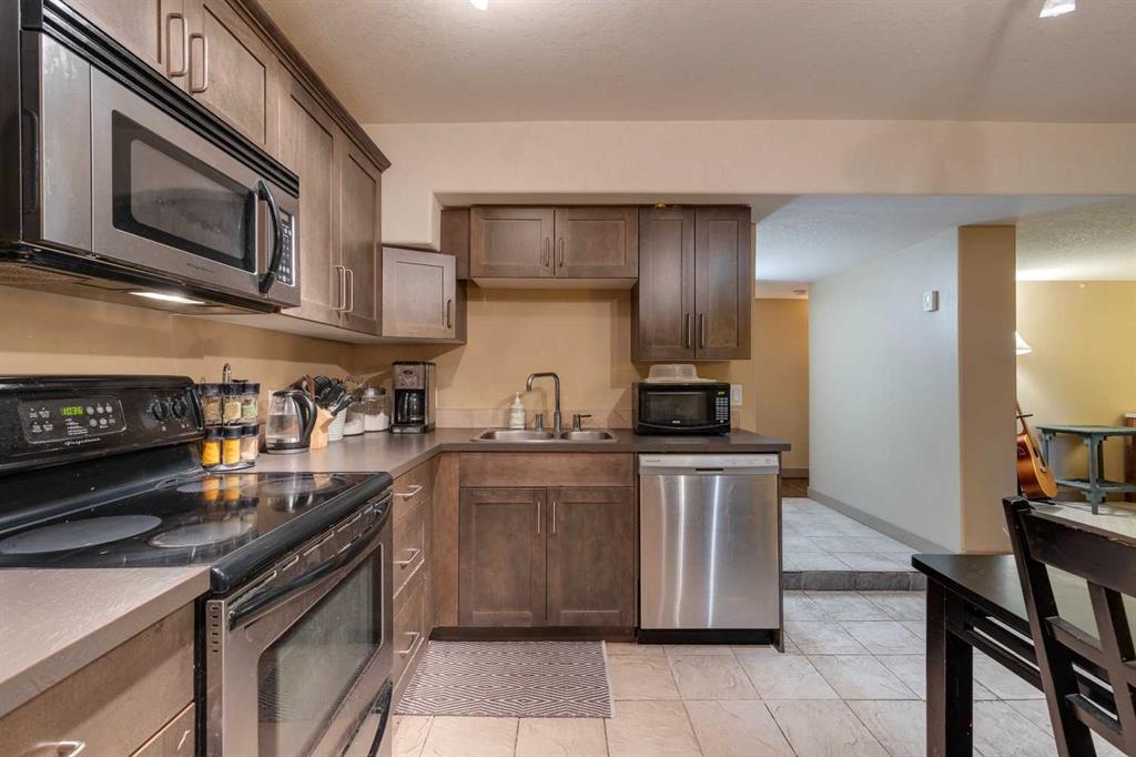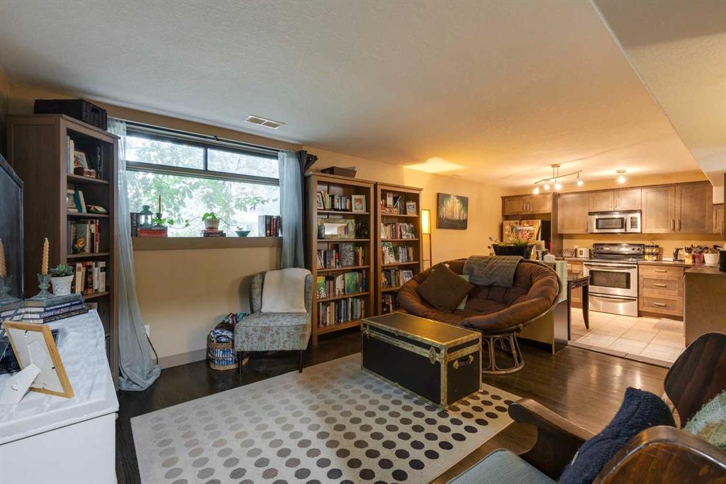 Tenant but 24 hrs notice not required but there is time restrictions as she works from home. See members remarks for time windows for showing. We also need a full 3 months for possession. She pays $1250 per month and pays her own electricity and gas. This small 6 unit building was completely renovated in the summer of 2006 and offers low condo fees! The updates go well beyond the cosmetic features of the units. The wiring, plumbing and exterior of the building have all been addressed. You enter the unit through your own private entrance directly from the front of the building. When you enter the unit you will love how bright and wide open it is. The updates are top quality and very modern. The updates include refinished hardwood flooring in the living room, hallway and rear bedroom, tile flooring in the kitchen and bathroom, brand new shaker kitchen cabinets, knock down stipple ceiling, rounded corner bead and all 4 kitchen appliances are stainless steel. There is also a front loading washer/dryer in the suite as part of the renovation. The living room is very bright and an excellent size for entertaining. The kitchen has room for a large table and tons of counter top working area. The bedroom offers two large windows and a good size walk in closet with organizer . Private parking stall at the rear of the unit with alley access (east stall) Located on a bus route with great access to downtown, Marda Loop and the 17 Ave shopping.