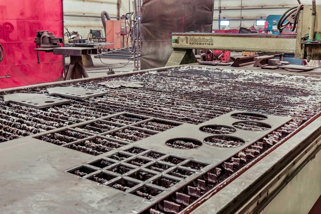 The shop is equipped with essential INDUSTRIAL INFRASTRUCTURE, including a shared AIR COMPRESSOR WITH AIR LINES, a shared 5-TONNE OVERHEAD CRANE WITH 40 FEET OF CRANE-WAY, 200-AMP ELECTRICAL SERVICE, and BRIGHT T-5 LIGHTING THROUGHOUT THE SPACE.