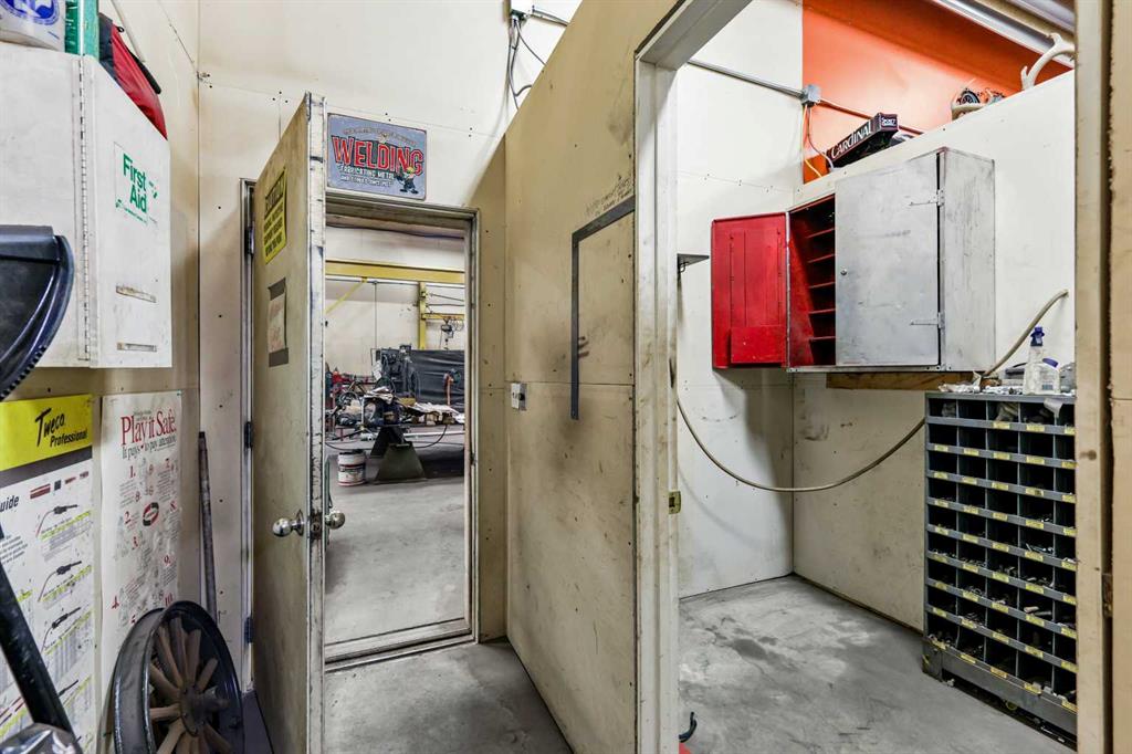 The property also includes SEVERAL PARKING STALLS AT THE REAR, providing AMPLE SPACE for your Equipment. THIS SPACE IS IDEAL FOR A SOLO OPERATOR OR SMALL BUSINESS OWNER LOOKING FOR A PRACTICAL, WELL-EQUIPPED AREA TO WORK ON PROJECTS, EQUIPMENT, OR LIGHT INDUSTRIAL TASKS.