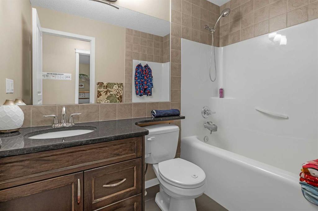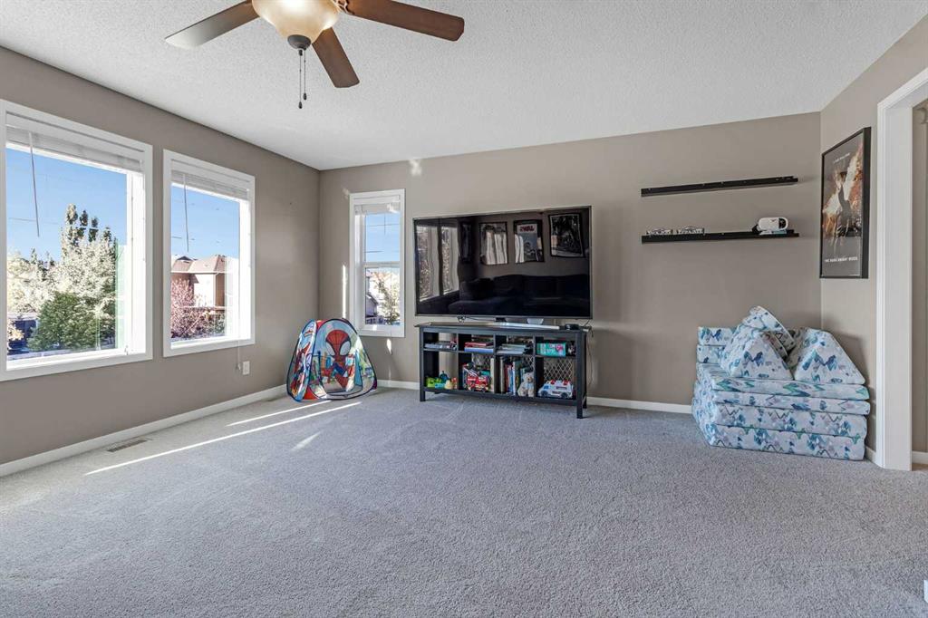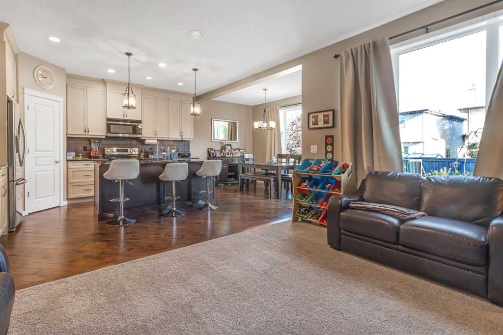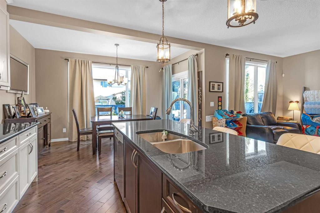 Welcome to 6 Auburn Glen Common SE, a fully developed 4 bedroom family home in the sought after lake community of Auburn Bay offering over 3,000 square feet of space. The front exterior blends clean lines with wood accents and tasteful stone detailing that continues to the covered entry. Step into a foyer with soaring ceilings that open to the second story, setting the tone for the bright and welcoming interior. Hardwood floors and elegant upgraded lighting fixtures guide you through the open main level where a kitchen, dining area, and living room flow seamlessly together for everyday living and entertaining. The kitchen features a large granite island with an extended breakfast ledge, full height cabinetry, stylish pendant lighting, a corner pantry, and stainless-steel appliances including a newer Bosch dishwasher. The living room centers around a striking stone gas fireplace, and the dining area provides plenty of space for enjoying formal meals or hosting friends. A main floor office offers a quiet place to work and study, while a half bath and mudroom with laundry and utility sink complete this level. Upstairs you will find the spacious primary retreat with a new triple pane window that keeps the space comfortable and quiet, a walk-in closet, and a five-piece ensuite with dual granite vanities, a large corner soaker tub, and a standalone shower. Two additional bedrooms and another full bathroom provide room for the whole family. The generous bonus room filled with natural light is perfect for movie nights or an extra play area. The finished lower level offers the same quality as the rest of the home. It includes a large recreation room that works perfectly as a home gym, yoga space, or an extra kid’s hangout, along with a fourth bedroom and a three-piece bath with a shower and granite counters. Outside, the backyard is set up for both play and leisure with a spacious deck and a versatile concrete pad that works just as well for a trampoline as it does for sidewalk-chalk art or a cozy lower seating area, plus a hot tub ready for year-round enjoyment. Additional highlights include granite counters throughout the home, central air conditioning, a Nest thermostat for efficient climate control, central-vac, and an exposed aggregate driveway and walkway that enhance the curb appeal. Set on a friendly street with the best neighbours, and just minutes from schools, parks, shopping, dog park, the South Health Campus, and so many more amenities, this home offers the year-round lifestyle of Auburn Bay with lake access for swimming, skating, and community events. Book your showing today!