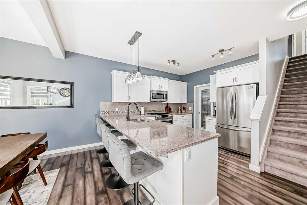 Welcome to your dream home! A true showpiece tucked away in the peaceful, family-loved community of The Canals, Airdrie! From the moment you pull up, you’ll appreciate the serious curb appeal and that perfect on-trend colour palette. This beautiful home sits quietly at the end of a low-traffic cul-de-sac that’s close to the park where kids can play. Step inside and the wow factor hits immediately with the sun-drenched open-concept floor plan, 9-foot ceilings and big windows that pour natural light from morning to late afternoon. This home is spacious, bright, and alive! The kitchen has crisp bright-white cabinetry, sleek granite countertops, a generous island with breakfast bar seating, and a gas range that makes cooking very enjoyable. There’s also a big walk-through pantry that stores a lot of food and other kitchen items. Right off the kitchen, the dining area flows effortlessly to a sun-soaked deck, plus a brick patio perfect for summer dinners, morning coffee, or just watching the kids run wild in the yard. The living room centers around a cozy fireplace that instantly makes everything feel warmer. There’s also a main-floor powder room and a double attached garage. Upstairs you’ll find a bright and spacious bonus room perfect for hanging out and movie nights with your family. The primary retreat is beautiful and spacious with a good-sized walk-in closet and a deluxe 5-piece ensuite. There are two more spacious bedrooms, a second full bathroom, and an upper-level laundry for convenience. The finished basement is such a delight with a big recreation room that can be a home office, gym, or a gaming room. Here you’ll also find a spacious fourth bedroom, another full bathroom and a much needed storage area. There’s also a low-maintenance private backyard with gas line for BBQ and enjoyment. The upgrades and beautiful feautures that you’ll love in this home are the central airconditioning, wide-plank laminate flooring, new LED lights, window zebra blinds, double attached garage, Lumenox outdoor lights, upgraded light fixtures in the house, new floating vanity in the half bath and the stunning accent walls. It’s also close to schools, playgrounds, pathways, shopping, and quick access for commuters. This lovely home is the one that you’re looking for! Book your showing appointment now!