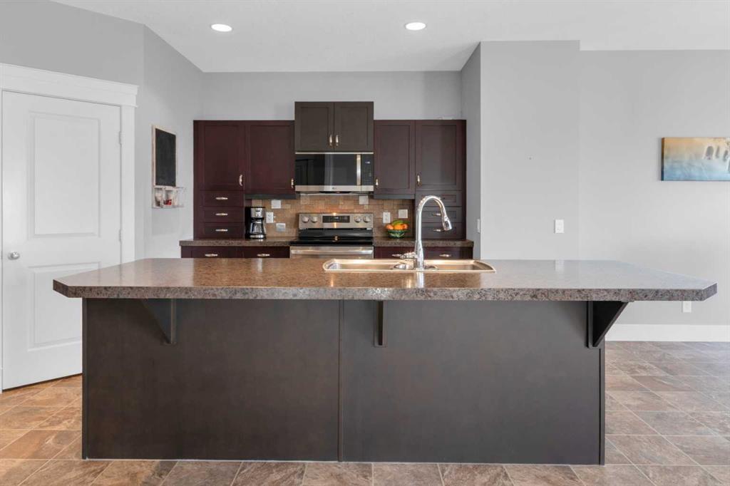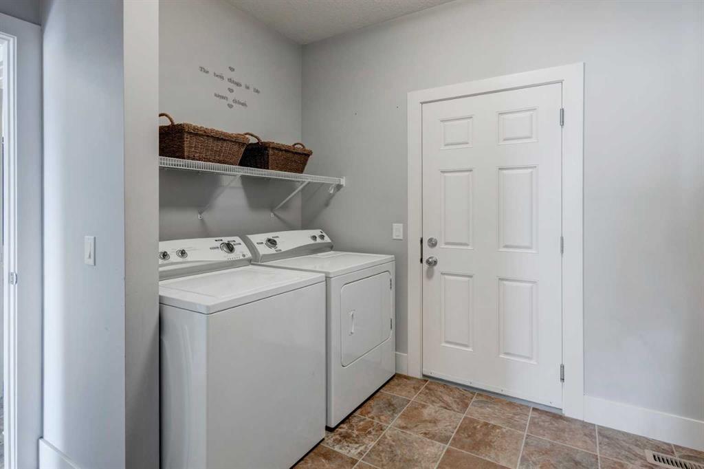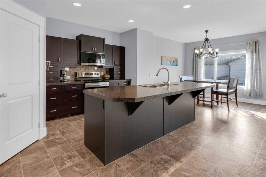 Welcome to this well-kept 2-storey home in the desirable community of Heritage Hills. Enjoy partial mountain views from the west-facing back deck and the charm of a family-friendly neighborhood just minutes from town and all amenities. Built in 2010, this home offers a bright, open layout with large windows and an abundance of natural light. The kitchen features rich dark wood cabinetry, a center island, and a large walk-through pantry leading to the convenient laundry/mudroom and back entrance. The main floor also includes an open-concept living area and a 2-piece bath. Upstairs, you’ll find 3 bedrooms, including a spacious primary suite complete with a 5 piece ensuite featuring a tub, shower, and double sinks. A 4-piece bath completes the upper level. Durable lino flooring throughout the main and upper levels adds both style and easy maintenance. The fully developed walkout basement offers a bright, open living space with in-floor heating, a large 3-piece bath, and access to the south-facing backyard. Step outside to a fully fenced back yard, landscaped with apple and pear trees, a perfect space for relaxation or family gatherings. Additional features include a double attached garage, drywalled with built-in shelving and storage, and a low-maintenance front yard. This home has been immacutely cared for and is in excellent condition—move-in ready and waiting for its next family