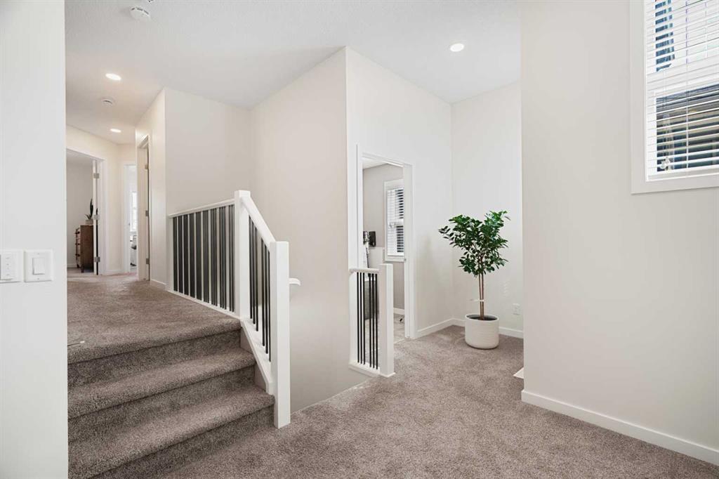 Welcome to 6 Kingsbury Close SE—FULLY FINISHED 2-storey home in impeccable condition, nestled in the sought-after community of Kings Heights, offering stunning west-facing mountain views paired with true turn-key, show home quality living. From the moment you arrive, the pride of ownership is undeniable. The home features a recently painted exterior, a fully landscaped yard complete with a dog run, and a heated, attached double garage. Step inside to a thoughtfully designed front entry with a built-in bench, ideal for keeping everyday life organized and functional. The main floor showcases a bright and airy open-concept layout, enhanced by beautiful hardwood flooring and large windows that flood the space with natural light. At the heart of the home is a timeless white kitchen, featuring granite countertops, a spacious pantry, and newer high-end stainless steel appliances. The kitchen flows effortlessly into the dining and living areas, where a cozy gas fireplace creates a warm and inviting focal point—perfect for both relaxed evenings and entertaining guests. Upstairs, you’ll find 3 generously sized bedrooms, including a primary retreat complete with a large walk-in closet and a spa-inspired ensuite featuring a double vanity, deep soaker tub, and separate shower. A spacious bonus room with soaring ceilings offers incredible versatility—ideal for a media room, play space, or home office—while upper-level laundry adds everyday convenience. The fully developed basement extends your living space with 2 additional bedrooms, a 3pc bathroom, and a substantial storage area, providing flexibility for growing families, guests, or multi-purpose use. This home is loaded with upgrades designed for comfort and efficiency, including central air conditioning, 16 solar panels, a brand new hot water tank, water softener, reverse osmosis water filtration system, smart lighting, and flood detection sensors. A sprinkler system rough-in is also in place for future ease. Perfectly situated in a family-friendly neighbourhood, just steps from schools, parks, scenic walking paths, and a nearby pond, this location offers the ideal balance of lifestyle and convenience. This is a rare opportunity to own a home that truly delivers on style, function, and condition—all in one of Airdrie’s most desirable communities. Call today to view!