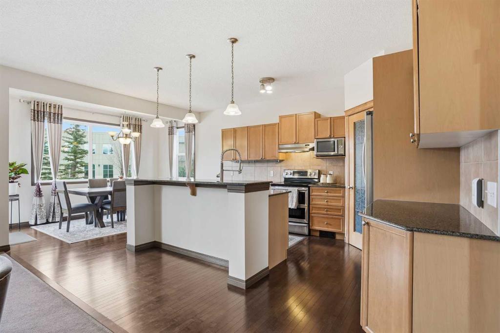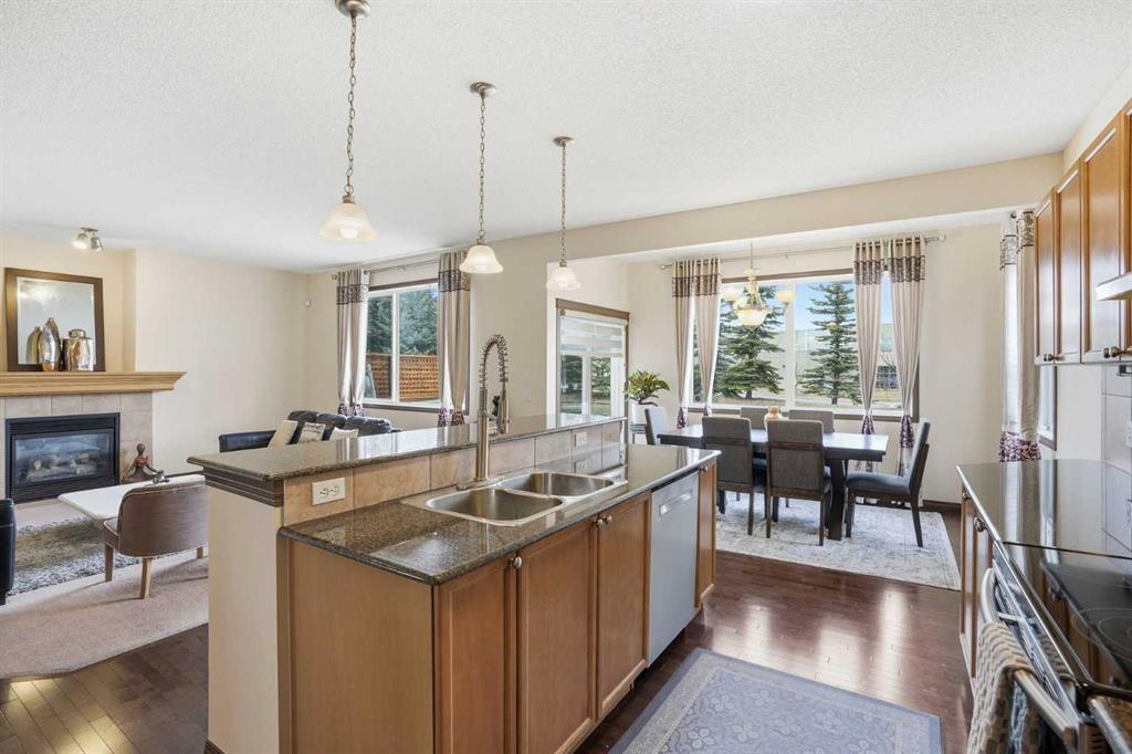 Nestled in one of SW Calgary’s most sought-after communities, this well-maintained 3 bed, 2.5 bath, 2-storey in Springbank Hill offers the space, layout, and location that families are looking for. The main level opens with a tiled entry and hardwood floors that carry through to a large living room anchored by an elegant gas fireplace, a warm and inviting space for both everyday living and entertaining. The kitchen is well-appointed with granite counters, stainless steel appliances, a corner pantry, and a bright breakfast nook with direct access to a generous deck. A separate den/office and a privately situated 2-piece bath complete the main floor thoughtfully.