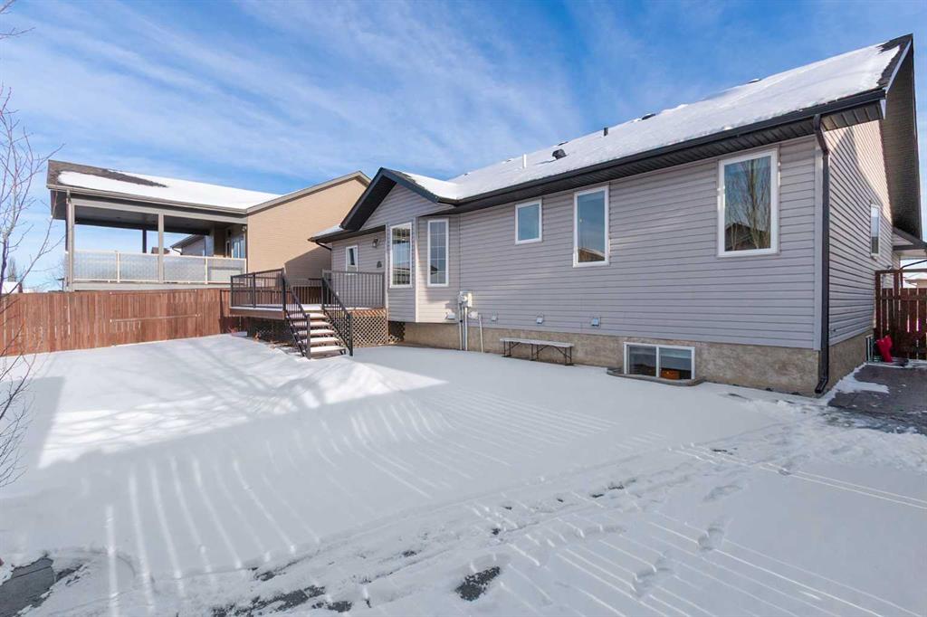 Welcome to this charming and spacious 1,673 sq ft bungalow featuring a rare lofted bonus room above the garage and numerous upgrades throughout. The main floor offers an inviting open-concept layout with a large kitchen that includes granite countertops, a corner pantry, abundant cabinetry, and a generous island overlooking the living and dining areas—perfect for both daily living and entertaining. This level also includes a comfortable bedroom, a full 4-piece bathroom, and the primary bedroom complete with a 3-piece ensuite. Upstairs, the expansive loft above the garage provides an ideal space for a family room, office, or hobby area. The fully developed basement includes an illegal suite with two bedrooms, a 4-piece bath, a spacious living and recreation area, and a kitchen equipped with a fridge, countertop cooktop, microwave, and sink, plus a large mechanical room and additional under-stairs storage. The home features many upgrades such as in-floor heating in the basement and garage, epoxy flooring and 9 ft ceilings in the basement, hot and cold water taps in the garage, a BBQ gas line on the back deck, new shingles and eavestroughs installed in 2025, and a hot water on demand system that is approximately three years old. Outside, enjoy the beautiful front veranda, landscaped yard, large back deck, and oversized storage shed—making this property both functional and inviting.