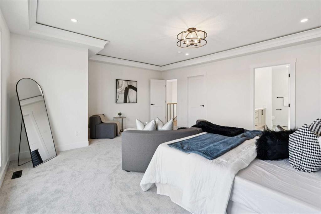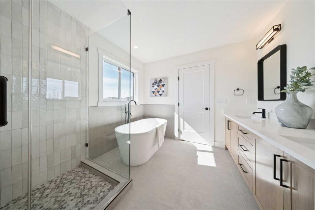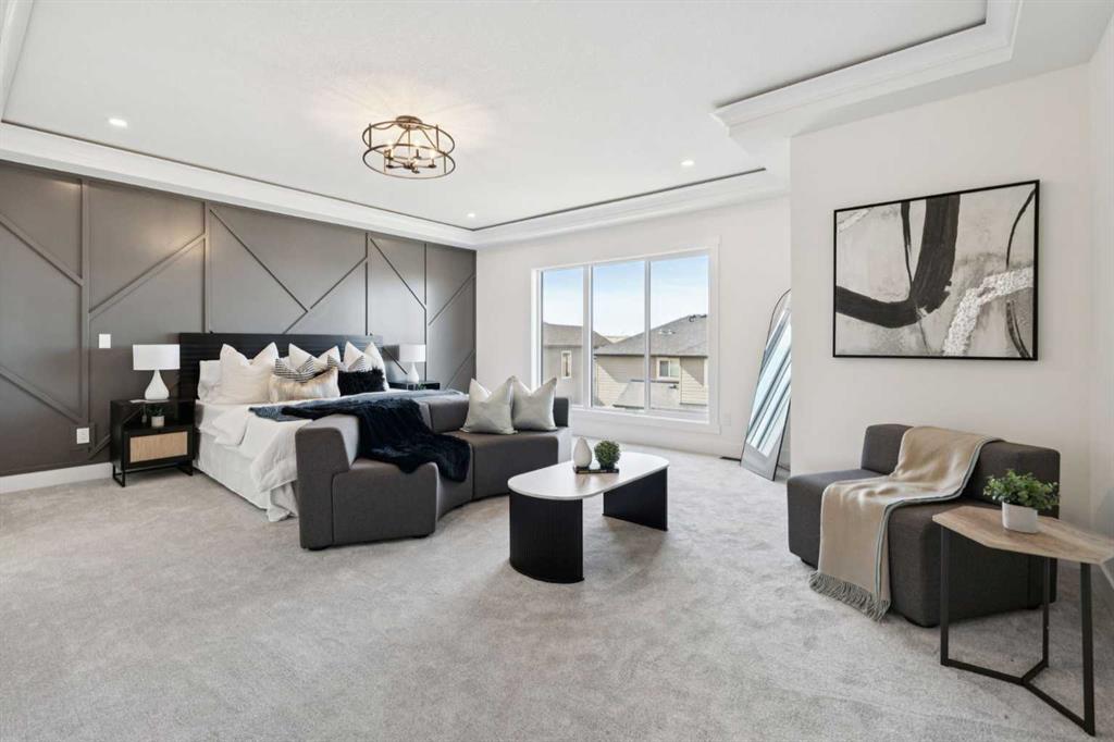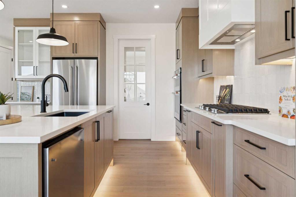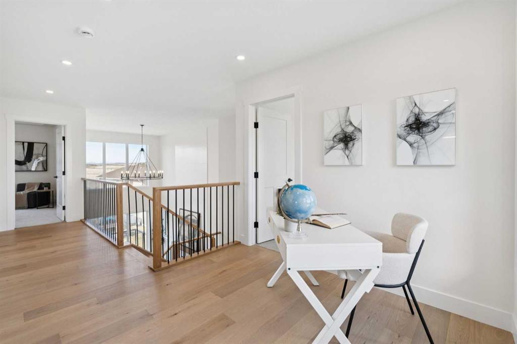 Welcome to an extraordinary walkout estate set on a premium 0.24-acre walkout lot in one of Okotoks’ most exclusive cul-de-sacs. Thoughtfully crafted, this home blends striking architectural presence with an elevated, design-driven interior—offering a truly refined luxury living experience. From the moment you enter, the home makes a lasting impression. A dramatic 17’ open-to-above great room is framed by oversized windows, flooding the space with natural light while showcasing a stunning fireplace with custom full-height millwork. The scale, light, and craftsmanship create a sense of both grandeur and warmth rarely found. The kitchen is a true showpiece—designed to impress and built to perform. Featuring custom white oak cabinetry, quartz countertops, and a premium KitchenAid appliance package, the space is anchored by a sculptural hood fan and elevated by thoughtful details throughout. Subtle under-cabinet and toe-kick lighting enhance the ambiance, while the oversized island and adjacent dining area complete with a coffee bar create the perfect setting for both intimate dinners and large-scale entertaining. A fully built-out main floor office offers a boutique workspace with custom millwork, integrated lighting, and designer finishes—ideal for professionals working from home. The mudroom continues the elevated aesthetic with shiplap detailing, checkerboard tile flooring, champagne brass hardware, and built-in storage that blends function with style. Upstairs, the oversized primary retreat is a private sanctuary, complete with tray ceilings, designer feature wall, ambient LED lighting, and peaceful mountain views. The spa-inspired ensuite is equally refined, featuring a freestanding soaker tub, glass-encased shower, dual vanities, and warm, modern finishes that create a calming, hotel-like experience. Additional bedrooms, a bonus/media room, and a designer laundry space complete the upper level. The walkout basement remains unfinished, offering the opportunity to work directly with the builder to create a fully customized lower level tailored to your lifestyle—whether that be a home theatre, wellness space, or extended living area. Outdoor living is equally well considered, with a rear deck complete with a gas line for BBQ—perfect for entertaining while taking in the surrounding views. Positioned at one of the highest elevations in Okotoks, this home captures sweeping views of the Sheep River Valley and Rocky Mountains. The oversized, pie-shaped lot offers exceptional privacy and flexibility for future outdoor living at scale. Completed with a triple attached garage and timeless exterior finishes, this home is covered by Alberta New Home Warranty. Price includes GST. A rare opportunity to own a move-in ready estate home where design, craftsmanship, and setting come together in perfect balance.