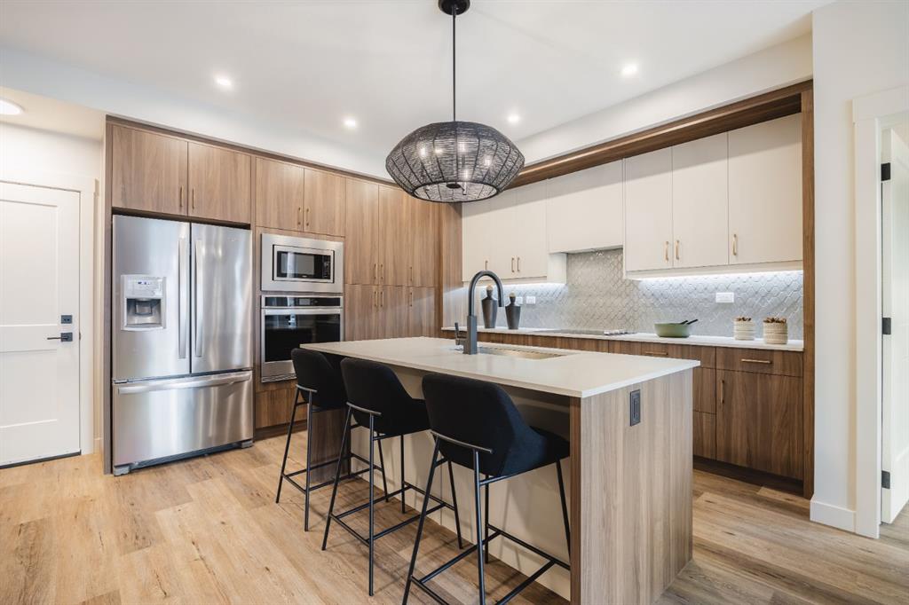 Set within the emerging heart of Three Sisters Mountain Village, this four-bedroom townhome at Altitude at Three Sisters by award winning Logel Homes offers a refined take on contemporary mountain living—where thoughtful design meets everyday functionality. Spanning three levels, the home is designed to accommodate both full-time living and lock-and-leave flexibility. The entry level features a private bedroom with in-floor heating—ideal for guests or a quiet workspace—while the main level opens into an inviting living and entertaining space. A gas fireplace anchors the room, complemented by a wet bar, beverage fridge, and seamless flow into a beautifully appointed kitchen. Here, upgraded quartz surfaces, a full-height backsplash, 41” cabinetry with risers, and a suite of premium appliances—including a Fisher & Paykel paneled fridge and gas range—create a space that is both elevated and practical. Upstairs, the vaulted primary retreat is a standout—framed by oversized windows and finished with a fully tiled walk-in shower, upgraded cabinetry, and California Closets. Additional bedrooms offer flexibility for family, guests, or work-from-home needs, all enhanced by upgraded flooring, lighting, and carefully considered storage throughout. Every detail has been curated—from under-cabinet lighting and pendant fixtures to air conditioning and upgraded tilework—delivering a home that feels complete from day one. With anticipated completion in summer 2026, this is an opportunity to secure a brand-new residence in one of Canmore’s most forward-looking communities. Monthly condominium fees of $335 include exterior maintenance, snow removal, landscaping, building insurance, reserve fund contributions, and professional management, along with access to a community spa and hot tub—ensuring a seamless, low-maintenance lifestyle. Positioned steps from the future Gateway commercial hub—with planned shops, dining, and grocery—this location continues to evolve as one of the Bow Valley’s most compelling places to live and invest. Built by Logel Homes, whose decades-long track record speaks to quality and reliability, this home reflects a commitment to enduring value and modern mountain design—an approach consistent with thoughtfully crafted new construction offerings in the region.