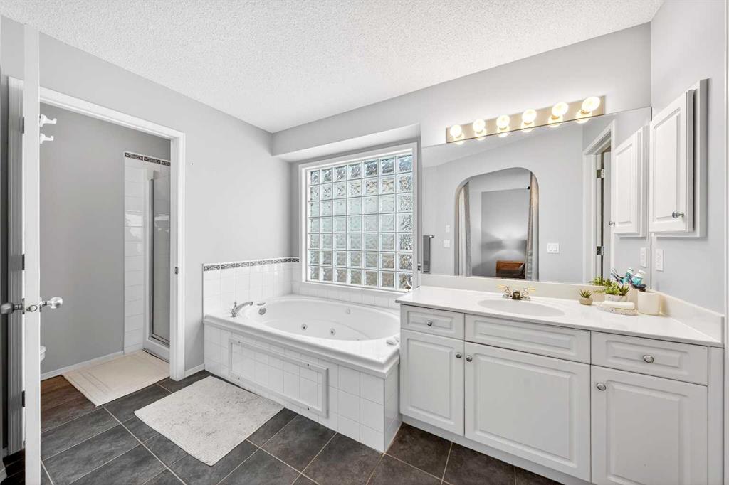 On the upper level, a loft area provides additional flexible living space—ideal for relaxing, reading, or family gatherings. The spacious Primary Bedroom features a walk-in closet and a 4-piece ensuite with a jetted tub and separate shower, offering a comfortable retreat. Two additional well-sized bedrooms and another full 4-piece bathroom complete this level.