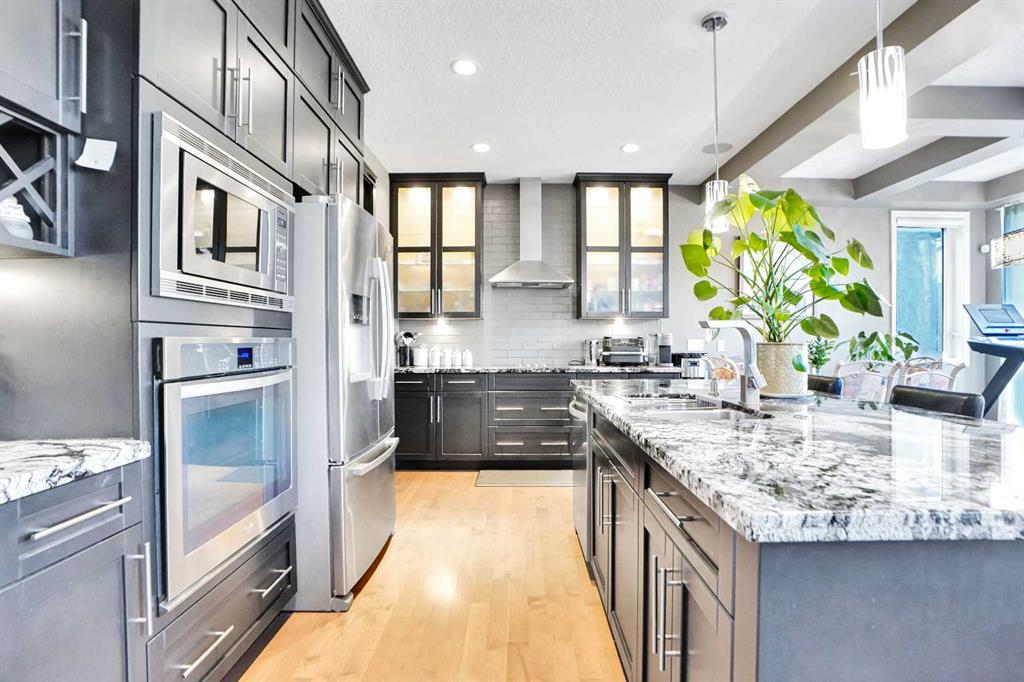 in one of the city’s most sought-after neighbourhood of Cranston. This impressive property offers over 2,424 sq ft of luxurious living space, thoughtfully designed for both comfort and style. Step inside and be greeted by soaring high ceilings and an abundance of natural light that pours through large windows, creating a bright and inviting atmosphere. The chef’s kitchen is a true showstopper —featuring built-in stainless steel appliances, granite countertops, custom cabinetry, and a spacious island perfect for entertaining or family gatherings. The open-concept main floor flows seamlessly into the elegant living and dining areas, anchored by a cozy fireplace. Upstairs, you’ll find a spacious primary suite with a spa-like ensuite and walk-in closet, along with two additional generously sized bedrooms and a full bath. Downstairs, the fully finished walk-out basement is an entertainer’s dream. Enjoy a custom wet bar, a large recreation space, an additional bedroom, and a full bath — perfect for guests or multi- generational living. Step outside to a beautifully landscaped backyard that opens directly from the lower level, offering privacy and plenty of space to relax or entertain. This home truly has it all — space, luxury, functionality, and a prime location. Don’t miss your chance to make it yours! Book a Showing today!