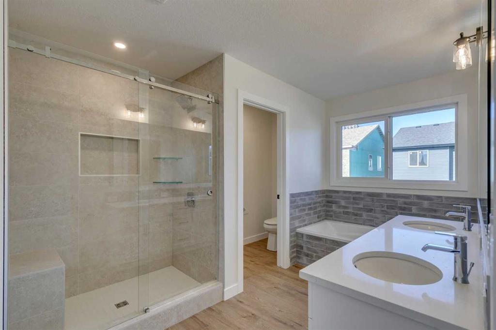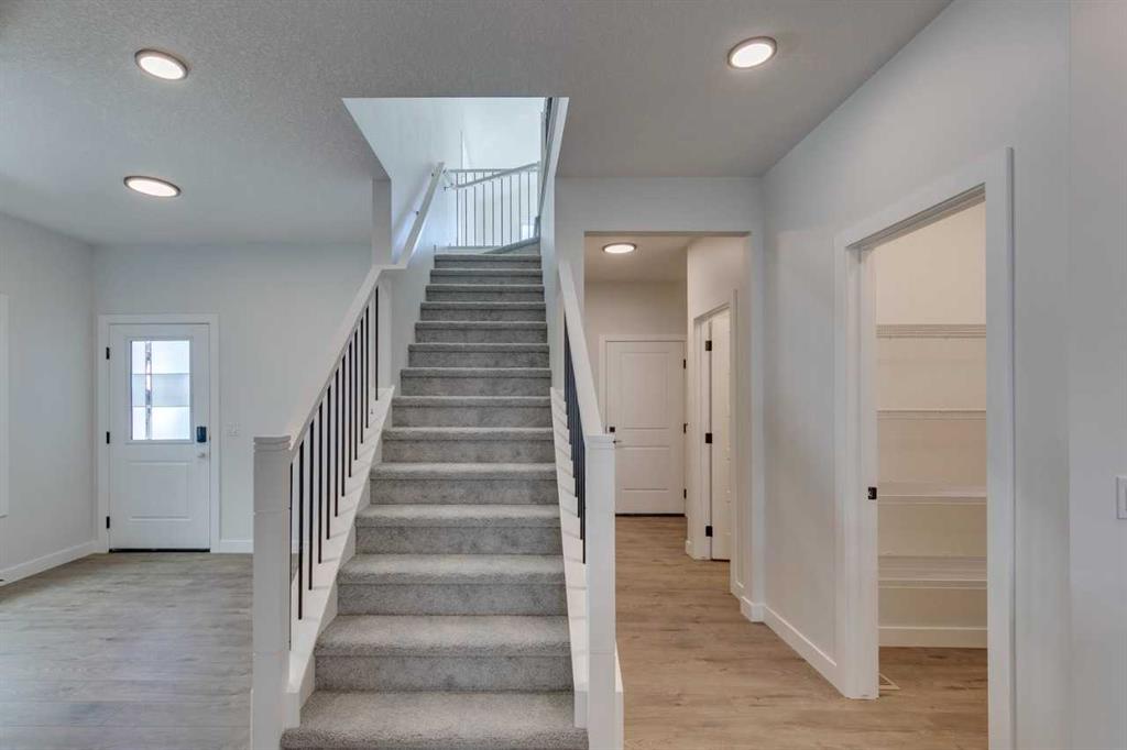 Featuring a full range of smart home technology, this home includes a programmable thermostat, ring camera doorbell, smart front door lock, smart and motion-activated switches—all seamlessly controlled via an Amazon Alexa touchscreen hub. This thoughtfully designed home features a separate entrance, perfect for future development. A main floor flex room with elegant double doors adds versatility, while the executive kitchen boasts built-in stainless steel appliances, gas cooktop, fridge with water & ice, and a spacious walk-in pantry. Relax in the great room with gas fireplace, step out onto the rear deck, or enjoy your morning coffee on the upper floor balcony. Upstairs offers a vaulted ceiling in the bonus room, a 5-piece ensuite with tiled walk-in shower, soaker tub, and dual sinks in the main bath. Bright and airy with additional windows throughout! Photos are representative.